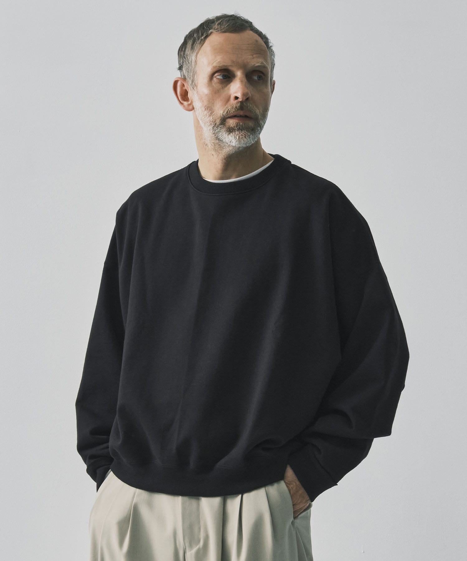 デザイン 最大の特徴は、短めの着丈とワイドな身幅のバランス。 自然に肩が落ちる設計と丸胴仕様により、360度どこから見ても美しいフォルム だからどのパンツにも合わせやすく、着るだけでバランスが整うスウェット。 シンプルだからこそ差が出る一着です。 ■素材 厳選したオーガニック・ピマコットンを使用。 一番のおすすめポイントは 上品な光沢を持ちながらピリング耐性にも優れ、ふんわりとした柔らかさと高密度ならではのタフさを両立しています。 長く着続けられるクオリティです。 素材 ・裏地:なし ・伸縮性:あり ・光沢感:なし メーカー品番:A26A09CS02C -MARKAWARE- 真の男性の為の洋服作り。 ガーメント発想でそれぞれのアイテムの作り込みを行う。 markaは60年代~70年代のカウンターカルチャーをベースにした、現在失われてしまった男性像の追求。 都会的なエッセンスを注入したカジュアルな洋服を主とする。 素材選びから、縫製、加工に至るまで、洋服作りにおけるすべてのアプローチを日本国内で行う。 古きよき時代から培われてきた職人的ディテールワークに独自のモダニズムとウィットを盛り込んだメンズウェアを展開。