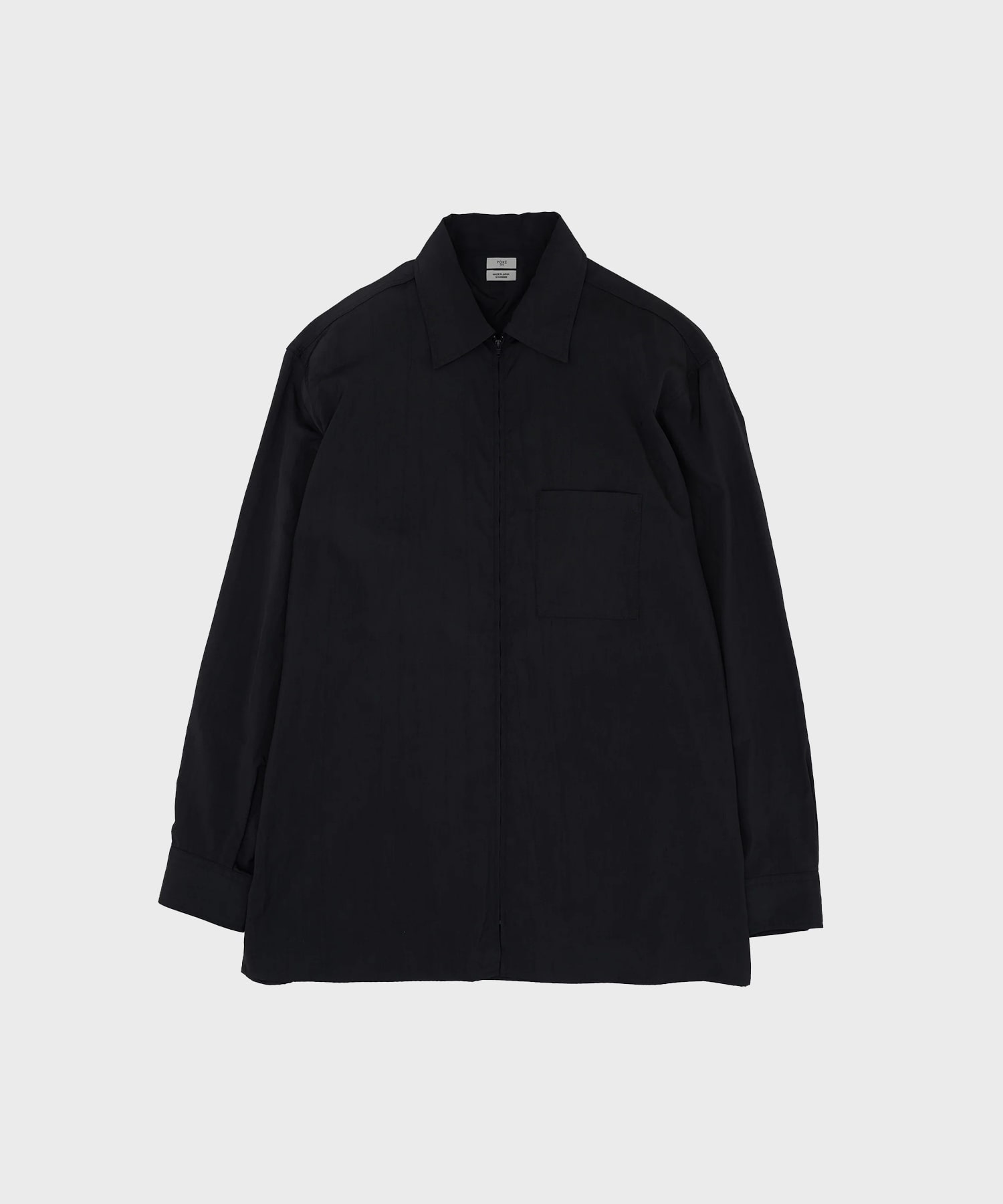 品とカジュアルさを併せ持ったシルクナイロンを使用したジップシャツ。