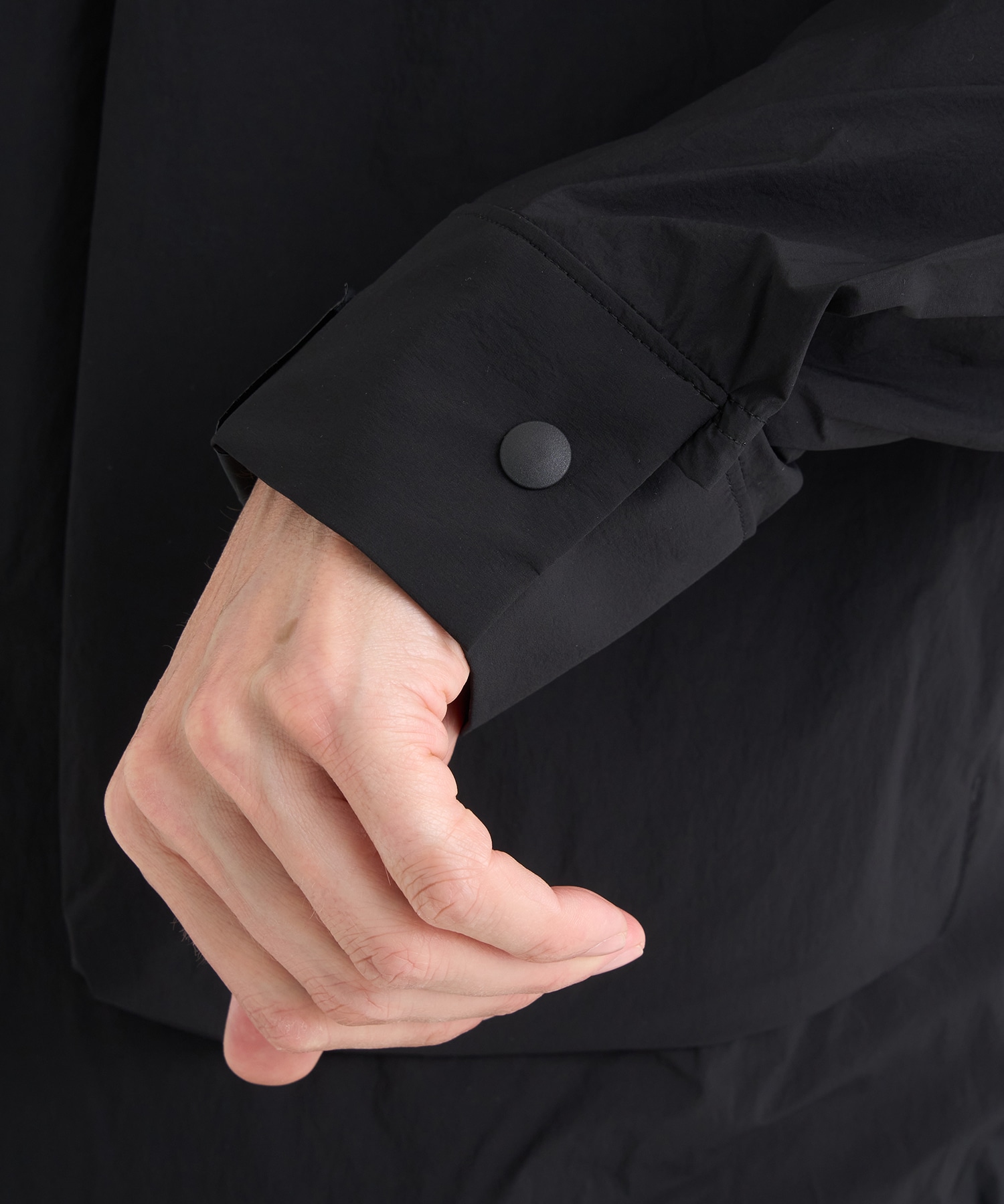 デザイン ・フィッシングジャケットのディテールをデザインに落とし込んだシャツブルゾン。 ・裏地なしの一枚仕立て。フロントにはプランサーを採用。ボタンの数を減らし、間隔を広く設定することでソリッドな印象に。サイドからもアクセス可能な大容量ポケットを両胸に配置。レイヤリングに適した低めのネックライン。裾にはゴムのスピンドルを配し、シルエットの調節が可能。左袖には、N.HOOLYWOOD COMPILEのアイコンであるブラックのブランドネームを配置。 ・程よくゆとりのあるボックスシルエット、ショート丈。 細いナイロンをポリウレタンにカバリングした、2WAYストレッチタフタ。接触冷感性を備えた機能素材。NAVYとCHARCOALはオリジナルカラーを製作。 素材 ・裏地:なし ・伸縮性:あり ・光沢感:なし メーカー品番:2251-BL05-005 -N.HOOLYWOOD- Designer 尾花大輔 MISTER HOLLYWOODは会社名及び店舗名で、N.HOOLYWOODがブランド名。古着やヴィンテージをベースとした服作り、シルエットと着心地にもこだわりを持つ。 また、ミリタリーもルーツとなっている。 尾花大輔は古着屋「go-getter」の立ち上げに参加し、その当時、古着の買い付けでアメリカのハリウッドに行っていたことで、ミスターハリウッドと呼ばれるようになった。 これが「ミスターハリウッド」の由来。 その後、2000年、「ミスターハリウッド」をオープン。2002年春夏コレクションより「N.HOOLYWOOD」のブランドで東京コレクションにデビュー。 正しいハリウッドの表記は「HOLLYWOOD」であり、「N.HOOLYWOOD」は遊び心から綴りを変えている。