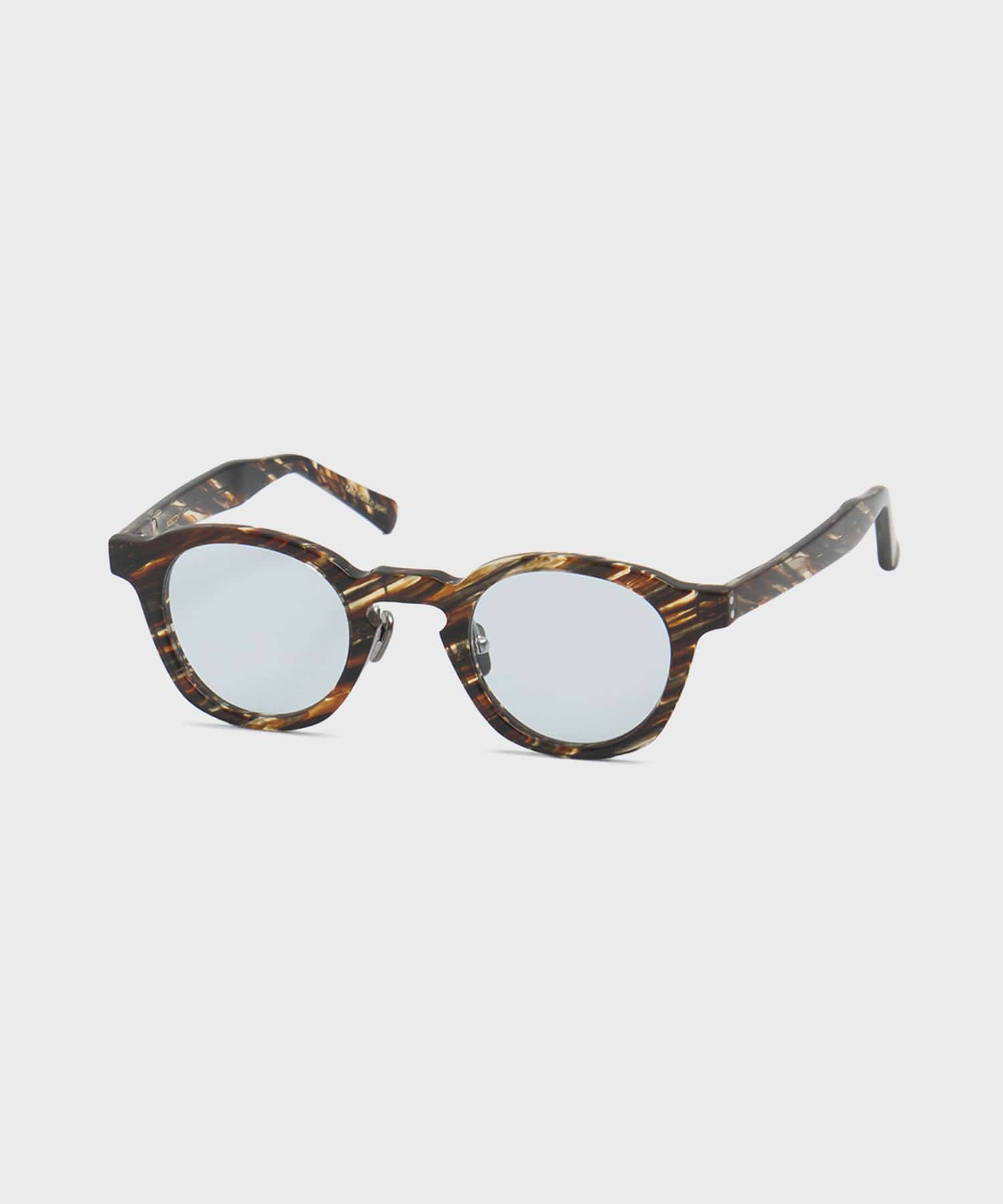 デザイン ジェローム・カーンが作曲し、数多くのアーティストがカバーしたこの曲を眼鏡として表現した今作。 小振りなレンズサイズで太い縁が印象的なデザインです。 サイドの2ドットのオリジナルディティールやチタン製のノーズパッドなど、ベーシックでありながら今までに無い新しさも感じられる一本。 ブルーグリーンのレンズは刻印入りのオリジナルレンズを使用しています。 メーカー品番:20008 -kearny- 色に深みがあり、使い込むほど肌に馴染み熟成する生地として20世紀半ばまで主流だった、セルロイド製の眼鏡。量産に不向きな上、 加工に手間が掛かる可燃性であることから、時の移ろいとともに技術の継承が途絶えつつある。 この事実は、ファッションに関わる以上、危惧すべき事象と感じ、2013年に眼鏡ブランド<kearny>をスタート。 デザイナー・熊谷富士喜が、古着バイヤー時代に寝床としていたサンフランシスコ・カーニー通りにちなんだ、その名には“歴史と文化の交差”という意を込めた。 眼鏡産業のいち時代を支えた職人技を後世に残したいという思いのもと、すべての眼鏡に用いたセルロイド製のパーツ。 各年代を彩ったデザインに敬意を払い、自身が眼で見たもの、手で触れたものをプロダクトに溶け込ませる一意専心な物作りを探求する。