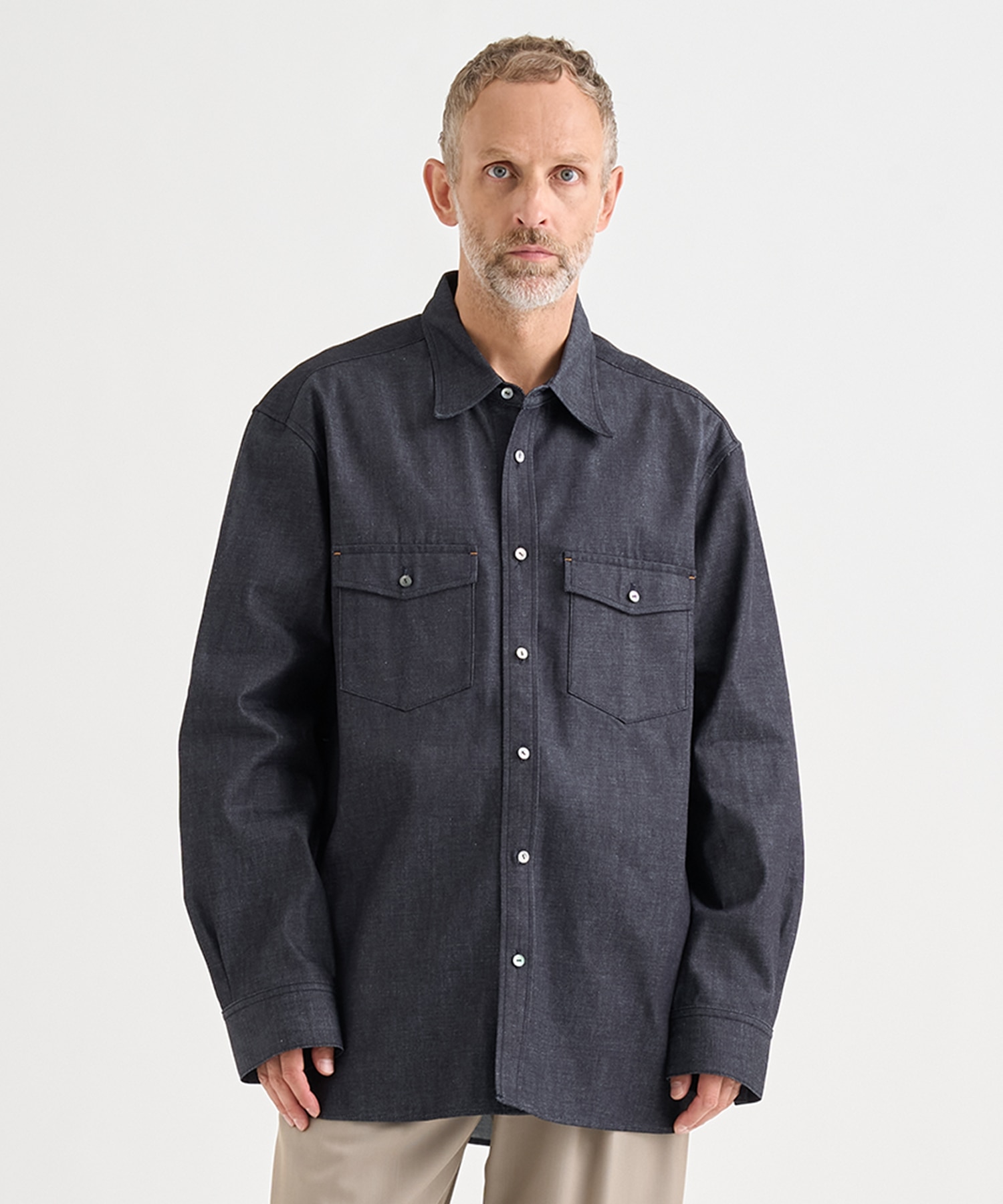 - / 別注DENIM RELAX FIT DOUBLE POCKET SHIRT