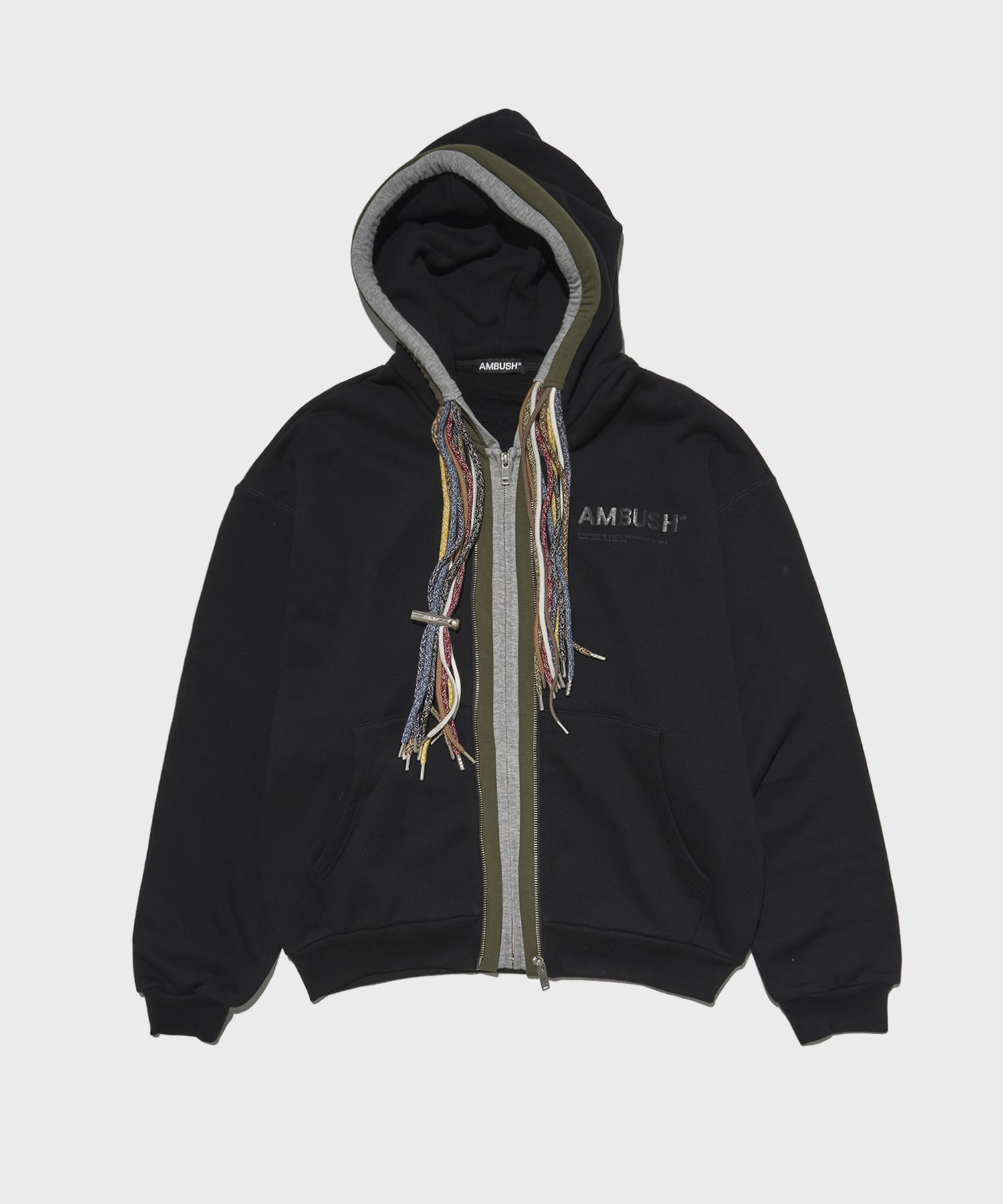 フードにあしらったマルチカラーコードが、動きとリズムをもたらすジップアップフーディです。