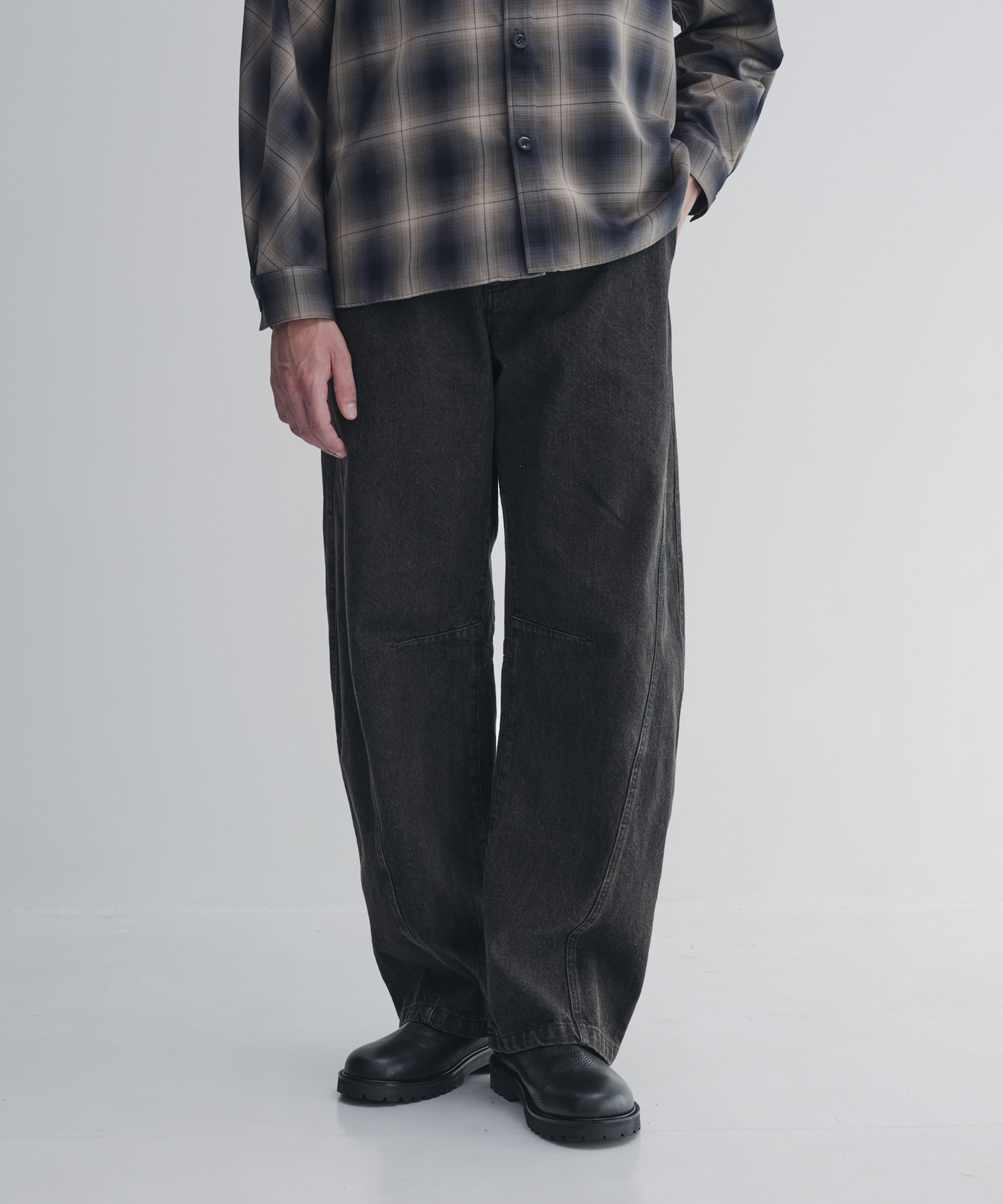 11.5ozのナチュラルデニムをベースに、オーバーダイとフェードで色に陰影を。 シリコン柔軟洗いによるヌメリ感のあるソフトさ、そしてバレル特有の丸みで、 カジュアルにもモードにも馴染む“都会の余白”をつくります。