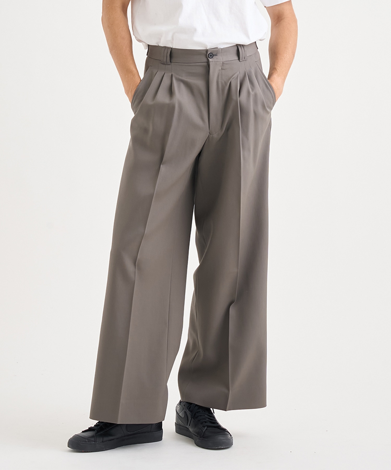 デザイン ハリ感と乾いた風合いにしなやかさを併せ持ったウールギャバジンを使用したトラウザーズ。 タテ糸ヨコ糸ともに2/60のオーストラリア産のウールを使用。 密度にこだわって、通年で着用可能な生地感です。 フロントループが3つ重なり合って3タックとなっているデザインが特徴です。 レギュラーフィット / ワイドレッグ / 3タック / 3ループ / アジャストタブ 素材 ・裏地:なし ・伸縮性:なし ・光沢感:なし ・生地の厚さ:普通 メーカー品番:YK25FW01051P -YOKE- ブランド名の《 YOKE/ヨーク 》は、『繋ぐ』『絆』『洋服の切り替え布』などの意味。"つなぐ" をコンセプトに2018AWにブランドをスタート。 素材やパターンにこだわり、スタンダードなアイテムにコンテンポラリーな要素をプラス。 ユニセックスで着用できる洗練されたアイテムを提案している。