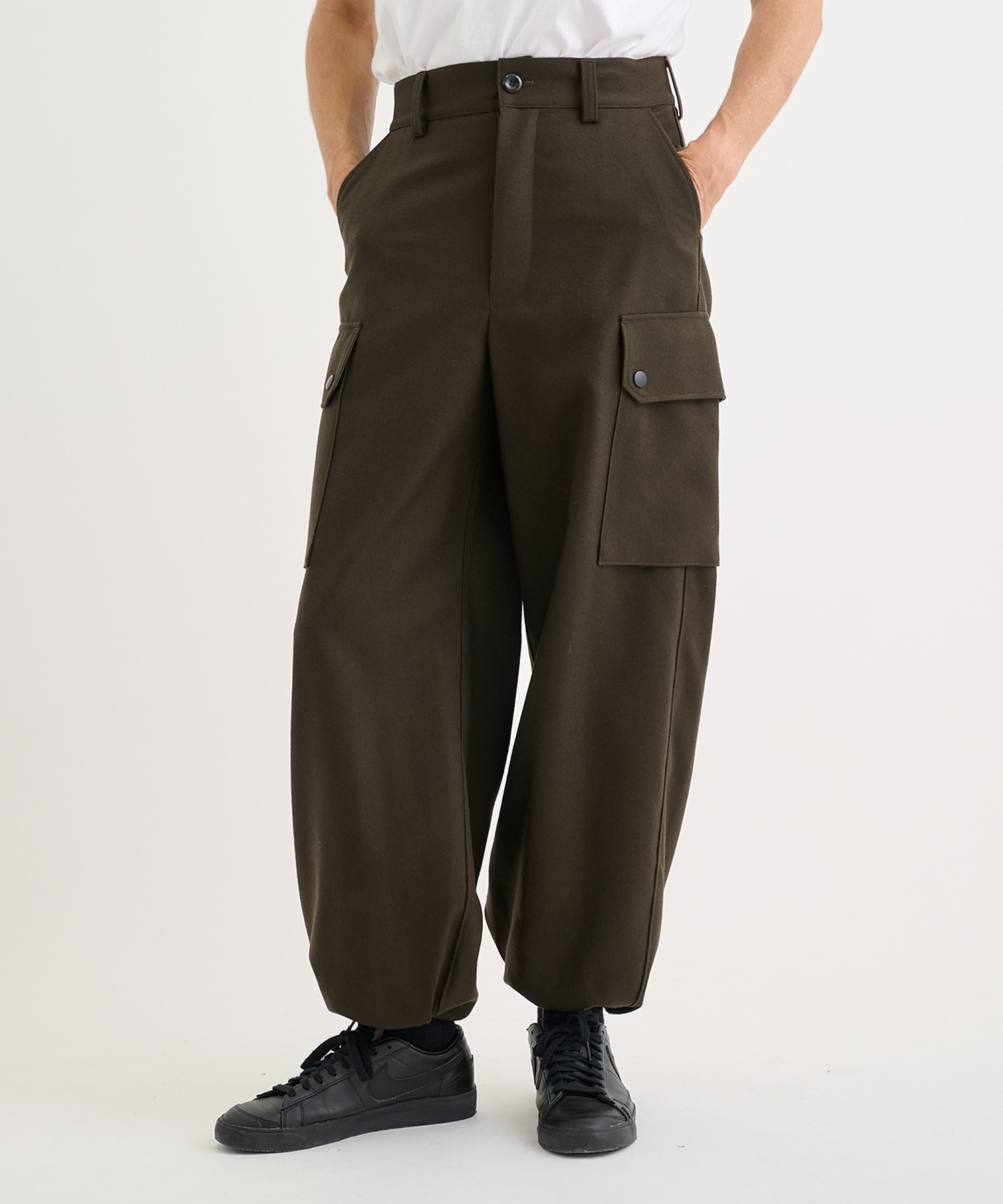 デザイン 梳毛のフランネル素材を使用したF2カーゴパンツ。 伝統的なフランス軍のF2カーゴパンツをモダンで上品なシルエットに設計した一枚となっております。 トラディショナルな細身のシルエットをセミワイドのバルーンシルエットにする事で、カーゴパンツ本来のディテールを変化させることなく、カジュアルでありながら、品格を感じさせるミリタリーアイテムに再構築しています。伝統的なF2 カーゴパンツに存在しないヒップポケットをつけることにより、ヒップラインの丸みを軽減し、実用性を高める設計となっています。 素材 ・裏地:なし ・伸縮性:なし ・光沢感:なし メーカー品番:25FW-REPT-281-2-J ※こちらの商品はブランド様のご意向により、ポイント付与が不可となっております。ご了承ください。 -THE RERACS- デザイナーの倉橋直実氏は、セレクトショップ勤務中にパターンメイキングやテキスタイルを学び、その後ブランド活動をスタート。 ベーシックでありながらも既成概念に捉われず、時代に合ったシルエットや素材を追求しながら、着る人に依存する、着る人を美しくするデザインを提案している。