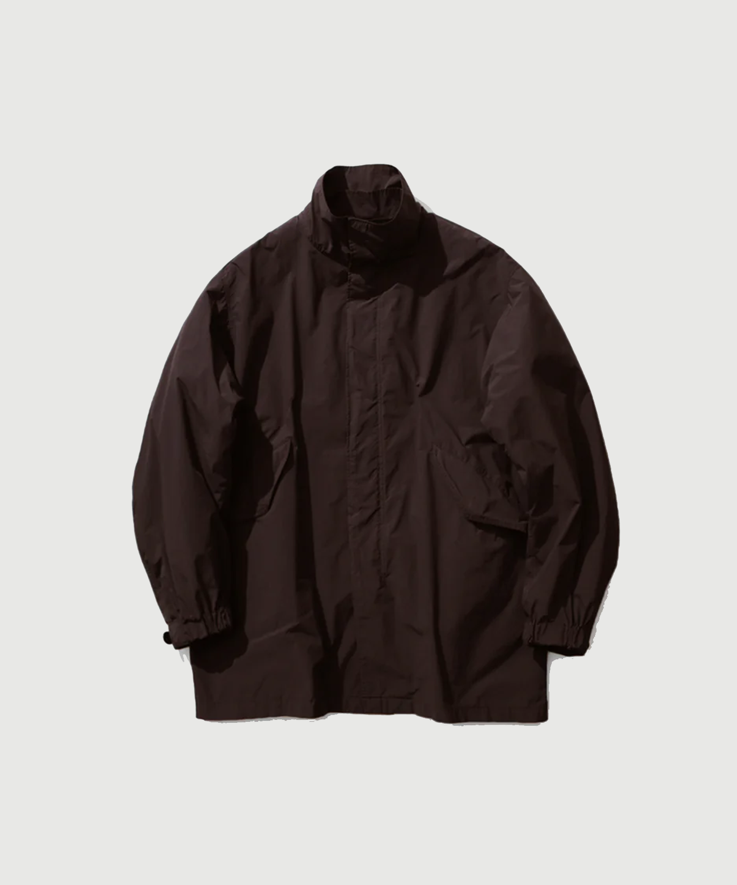 ■素材 ナイロンとポリエステルの熱収縮率の違いを生かし、環境の変化により表情が変わっていく様を楽しむことのできる、天然繊維のような糸を使用し、石川県能美市にて高密度に織り込むことにより、独特の風合いを表現した素材です。製品染めで仕上げ、撥水加工を施しています。ライナーはしっかりと保温性が伴うので、真冬でも着用することができます。