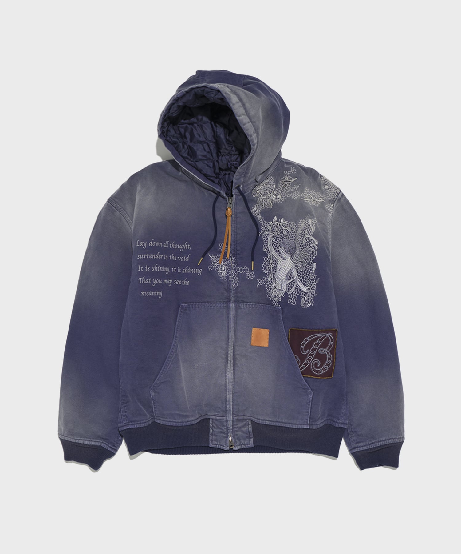 KHOKIらしい刺繍とプリントが施されてるパーカーブルゾン。