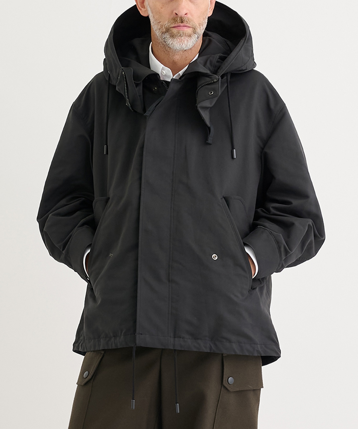 デザイン 高密度ポリエステル/ナイロン素材を使用したTHE RERACS定番のモッズコート。 本格的なM-65をベースに、現代的にブラッシュアップさせています。肩がドロップしており、袖はまっすぐと綺麗に落ち、バストから下に向かって少し広がるシルエットです。 特徴でもあるフードは、デザインベースのM-65のように本体と独立しており、ネックの周りにボリュームと立体感が出やすい設計で全体のシルエットを構築しています。 またフードの背中心側のコードを絞り、フードをすっきりさせてトップをコンパクトにすることが可能。オリジナルのデザインやディテールは継承しながらも、袖にボリュームを加えシルエットを変化させています。素材の特性を生かし、軽やかでありながらシルエットがしっかりと保形される設計となっております。 素材 ・裏地:あり ・伸縮性:なし ・光沢感:なし メーカー品番:25FW-RECT-483-J ※こちらの商品はブランド様のご意向により、ポイント付与が不可となっております。ご了承ください。 -THE RERACS- デザイナーの倉橋直実氏は、セレクトショップ勤務中にパターンメイキングやテキスタイルを学び、その後ブランド活動をスタート。 ベーシックでありながらも既成概念に捉われず、時代に合ったシルエットや素材を追求しながら、着る人に依存する、着る人を美しくするデザインを提案している。