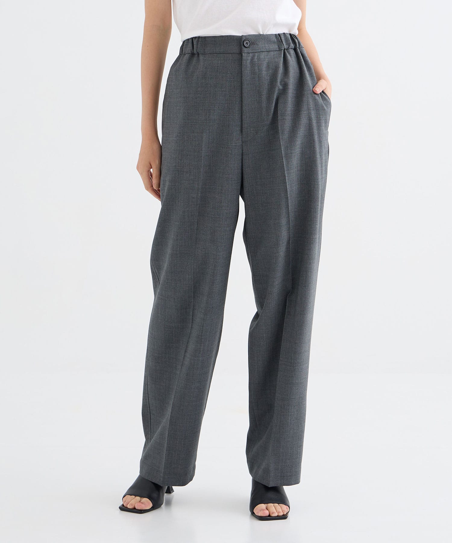 洗える/シワになりにくい/速乾/通気性/消臭効果 品も機能性も欲張りたい大人のイージーケアパンツ 同素材のトップスはこちら 同素材のスカートはこちら 同素材のワンピースはこちら デザイン ウエストゴム仕様で、履き心地も手入れも快適なキレイ見えパンツ。 気になる腰回りにはゆとりを持たせ、ウエストは内側についたコードで調節も可能。 普段使いには勿論、オフィスカジュアルやパーティシーンにもおすすめです。 素材 通気性に優れ、軽やかで涼しく夏でも蒸れ知らず。 洗っても汗をかいてもすぐに乾き、更に消臭効果まで備えた天然繊維の高機能サマーウールです。 透け感:なし 伸縮性:なし 裏地:なし メーカー品番:T24AW-PT1-M -THE PERMANT EYE- 2021年9月にスタートしたTHE TOKYOオリジナルプロジェクトブランド。 「結婚や出産など変化するライフスタイルの中でも、昔と変わらずファッションを楽しみ続けてほしい。」そんな願いから、“高級素材×機能性”に拘った大人の女性の為のエレガントベーシックウェアを取り揃えています。 TOKYOBASEならではの“メイド イン ジャパン”をベースに、日本の工場背景かつ日本を代表するデザイナーと共に製作。 今回は、THE TOKYOでも展開するブランド“INSCRIRE”のデザイナーである岡ゆみかさんにデザインを依頼。