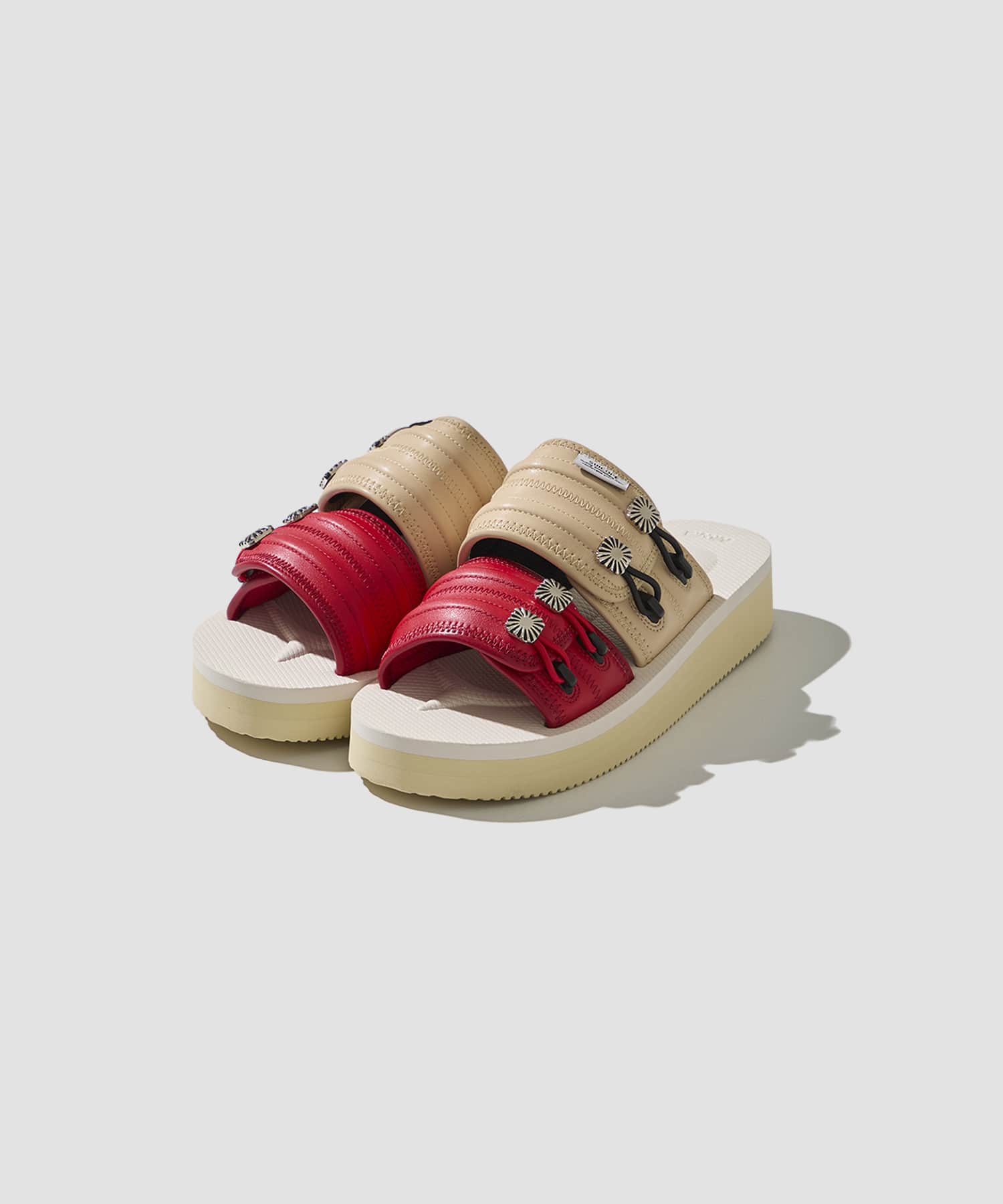 TOGA×SUICOKE メーカー品番:TC241-AJ511 デザイン 甲を覆うようなアッパーデザインが特徴的なスライド型モデル「MURA」がベースのサンダル。 2つのパーツに分かれたアッパーには、それぞれ“スクエアコンチョ”を装飾し、ウエスタンなムードに仕上げました。 伸縮性のあるかぎホック仕様のため、履き心地抜群の一足です。 素材 ソールにはSUICOKEオリジナルソールを採用。 軽量性・屈曲性・衝撃吸収性・耐摩耗性などに優れ、長時間の歩行でも快適です。 ソール高3.5cm <推奨サイズ> 23:23.0~23.5 24:24.0~24.5 25:25.0~25.5 ※甲高の方は1サイズアップがお勧めです。 ※あくまで推奨サイズとなり、個人差はございますのでご了承ください。 -TOGA PULLA-デザイナー古田泰子氏が手掛けるブランド「TOGA(トーガ)」。 ブランド名のTOGAとは、古代ローマで着用された上衣”トゥニカ”の上に着用する一枚布の上着から由来している。 ギリシア神話の聖なる衣もTOGAと言う。イノセントとアンダーグラウンドの融合がTOGAの特徴。 -SUICOKE- 2006年にシューズブランドとして本当に自分たちが欲しい物、所有したい物だけを作っていく、挑戦的創造開発をコンセプトに良質シューズをメインにスタート。