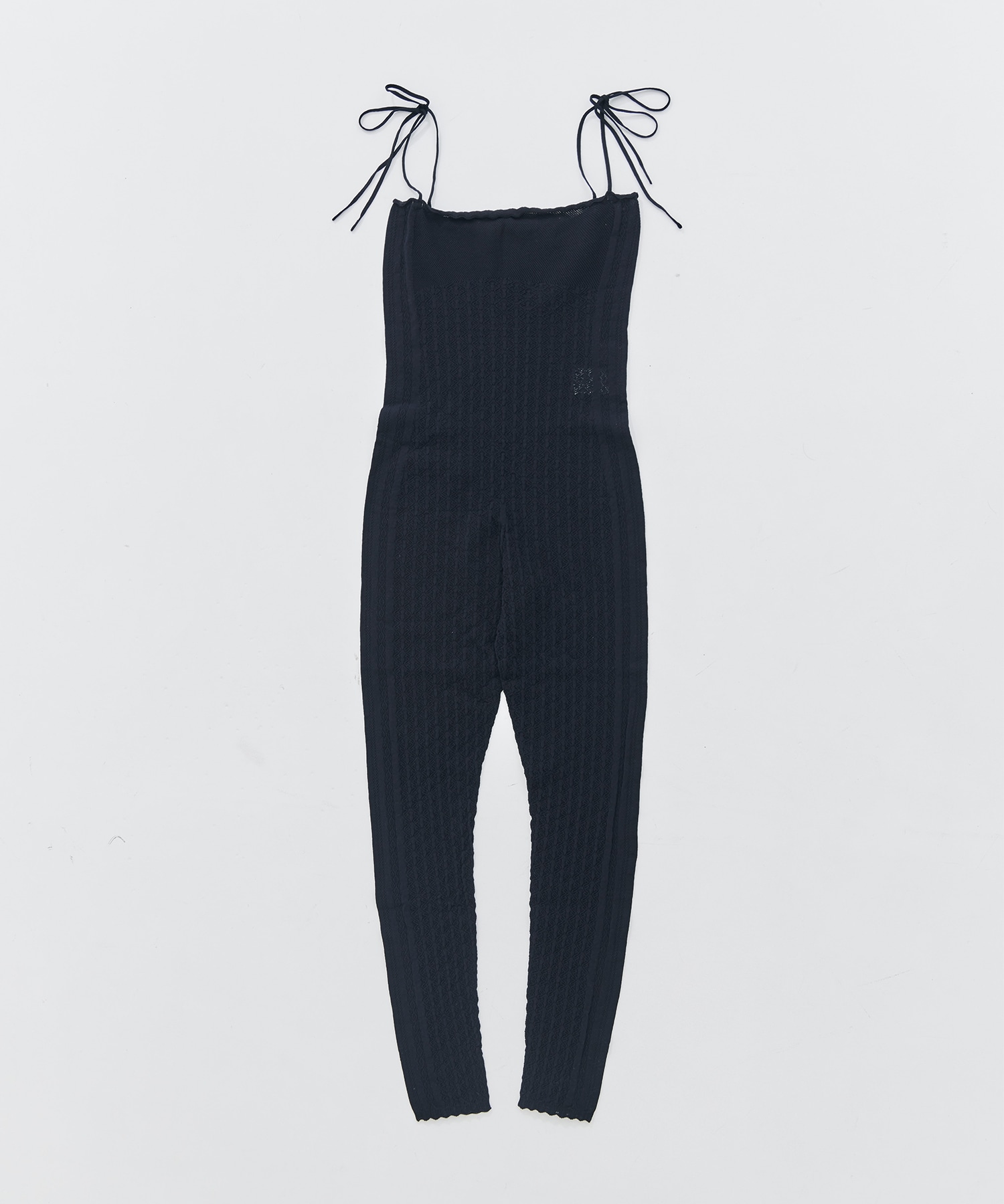 デザイン複数の柄を組み合わせ、ストレッチ性の高いナイロン素材を使用したジャンプスーツ。ウエストで折り返すことにより、レギンスとしてもご着用いただけます。シームレスで程よいフィット感があります。素材透け感:あり伸縮性:あり裏地:なし メーカー品番:FTC244-7011-FETICO-FETICO(フェティコ)は元クリスチャン・ダダのウィメンズデザイナー舟山瑛美と、同ブランドのパタンナー・高浜温子の2人で設立。ブランド名は、デザイナーを務める舟山瑛美のニックネームから名付けられている。ブランドの着想源となるのは、女性の造形美を強調するスタイル。女性の美意識や身体観を独自の視点で再構築し、様々な要素を組み合わせながらユニークで新しい女性像を提案する。ラインナップするアイテムは、透け感や光沢のある素材を用い、女性の体のラインを美しく見せるシルエットに仕立てている。日本国内で生産されているのも特徴で、素材だけでなく縫製のクオリティの高さもブランドの強みとなっている。