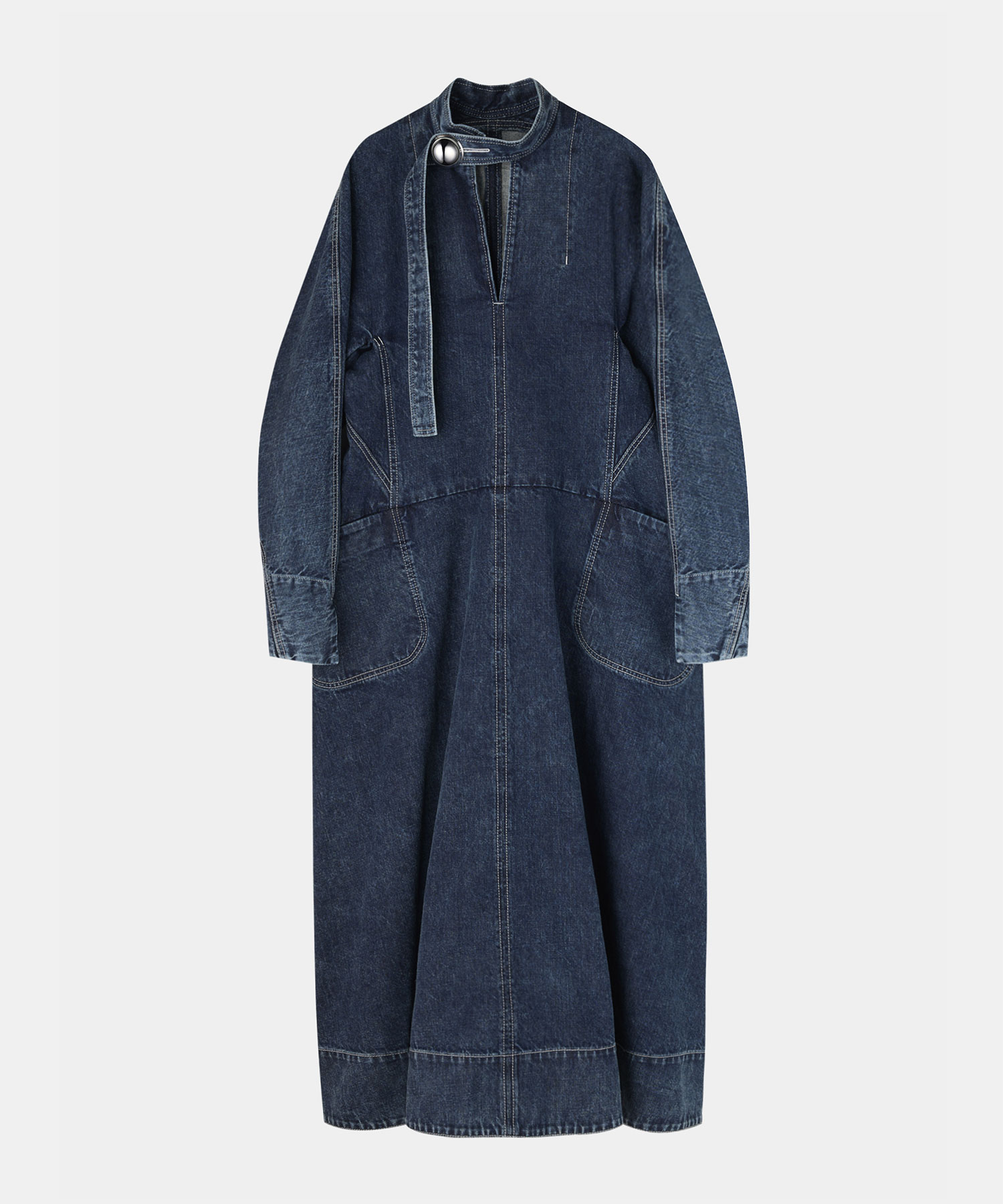 タイムレスなシルエットで愛される〈ELIANA〉を、デニムで再解釈した一着。 ミニマルな中に凛とした存在感を宿し、日常から特別な場面まで、装いに奥行きと余白をもたらします。