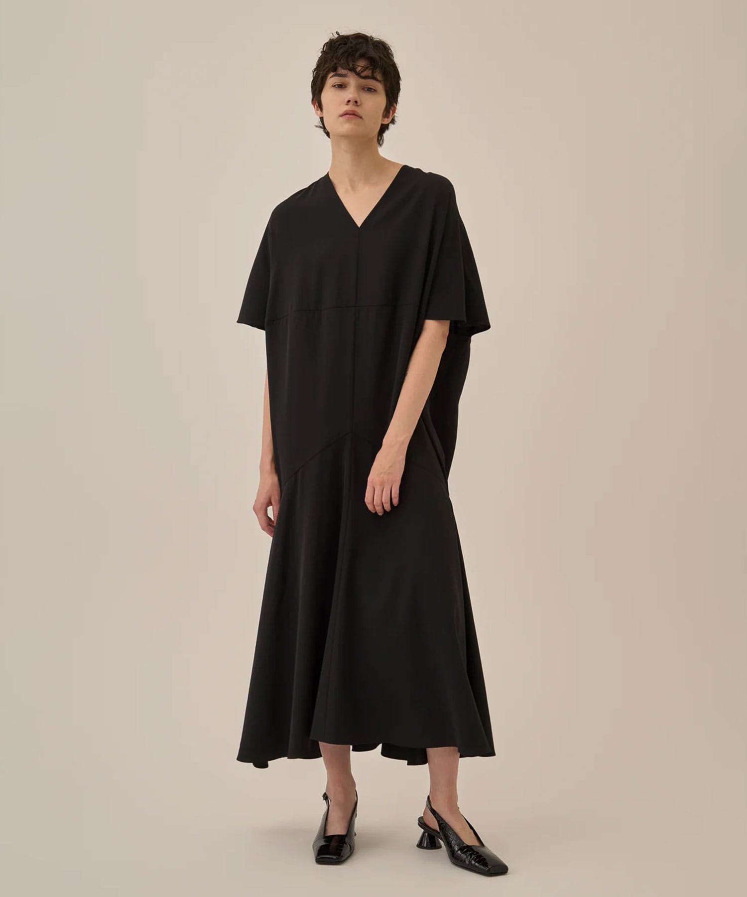 デザイン独創的なフォルムが他にないモダンなバランスを演出するデザインドレス。今季のテーマでもある『静寂の造形』は、彫刻家イサム・ノグチの作品や彼が表現しようとした概念から着想を得たものです。その中でも私たちが着目した『身体性』という要素をデザインへと発展しました。彼が、舞台芸術おける装置としての彫刻が身体と関係付けられることで、空間を意味と感情を帯びたものに変容できると考えたように、身体の動きや所作に宿る美しさを視覚的に表現しました。日本の風呂敷のように四隅を中心へ向かって折り畳むアプローチから設計された身頃は、平面的な布の中に体を通すことでコクーンシルエットのような独創的なフォルムとドレープを生み出します。加えて、裾に軽やかなフレアスカートを取り付け、モダンなバランスを持つマーメイドラインを描くことで全く新しいシルエットのドレスを形成しました。素材に、軽やかな風合いと程良いハリ感を持ったウール混のテキスタイルを使用することで、リュクスな空気感を纏いながらもそのフォルムを美しく保ちます。洗練された佇まいでありながら力強い個性を宿した一着は、日常の装いに一歩踏み込んだ刺激とエスプリの効いた大人のエレガンスを与えます。素材透け感:なし伸縮性:あり裏地:なしメーカー品番:AR2623-BK-AKIRANAKA-"attitude"を身に纏う 日々の生活の中で服を着た時に「この服でしか感じられない高揚感」「この服を着てしか見れない景色」そのようなスペシャルな感覚と体験を得られるクチュール感あふれる服つくりを目指す。