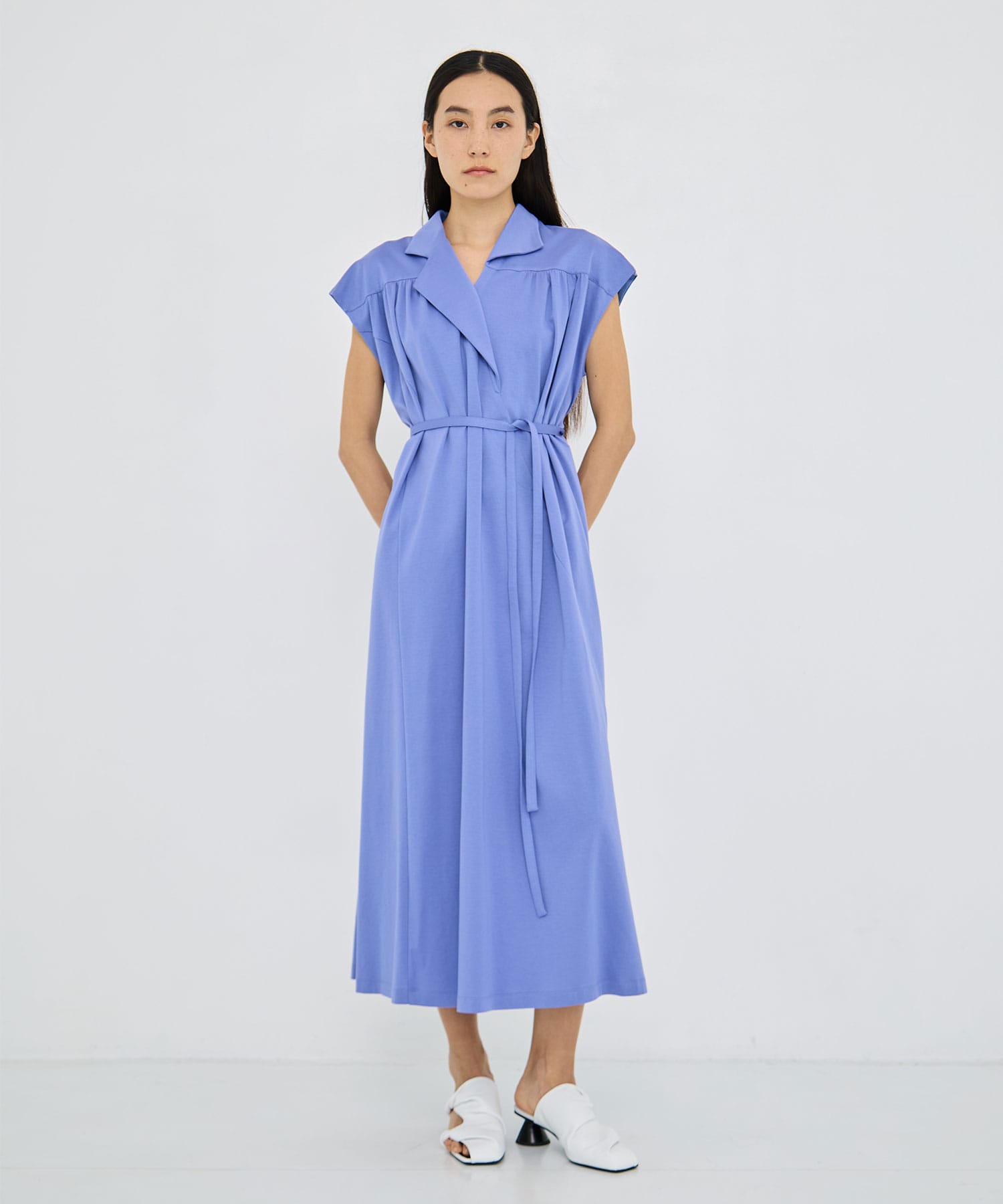デザインラペルのカッティングとコントラストの効いたテキスタイルの妙が新鮮なニュアンスを生むコンビネーションドレス。身頃へと溶け込むように施されたアシンメトリーなラペルデザインがデコルテを美しく彩る一着は、付属の共布ベルトでウエストマークすることで、ドレス全体をエレガントにまとめます。独特な風合いのリネン・レーヨン混の素材でシャープに仕立てた衿とヨーク、リラックスしたムードを演出するコットンジャージーで仕立てられた身頃によって、カジュアルな印象になりがちなジャージードレスにフレッシュな空気感を纏わせました。ナチュラルな印象の中にもリュクスな空気感を醸し出すドレスは、リラックスした日常の装いに確かな個性とアーティテュードを与えてくれます。・ナチュラルフィット・ロング丈・ウエストベルト付き素材透け感:なし伸縮性:なし裏地:なしメーカー品番:AR2604-BL、AR2604-BK-THE RERACS-デザイナーの倉橋直実氏は、セレクトショップ勤務中にパターンメイキングやテキスタイルを学び、その後ブランド活動をスタート。ベーシックでありながらも既成概念に捉われず、時代に合ったシルエットや素材を追求しながら、着る人に依存する、着る人を美しくするデザインを提案している。