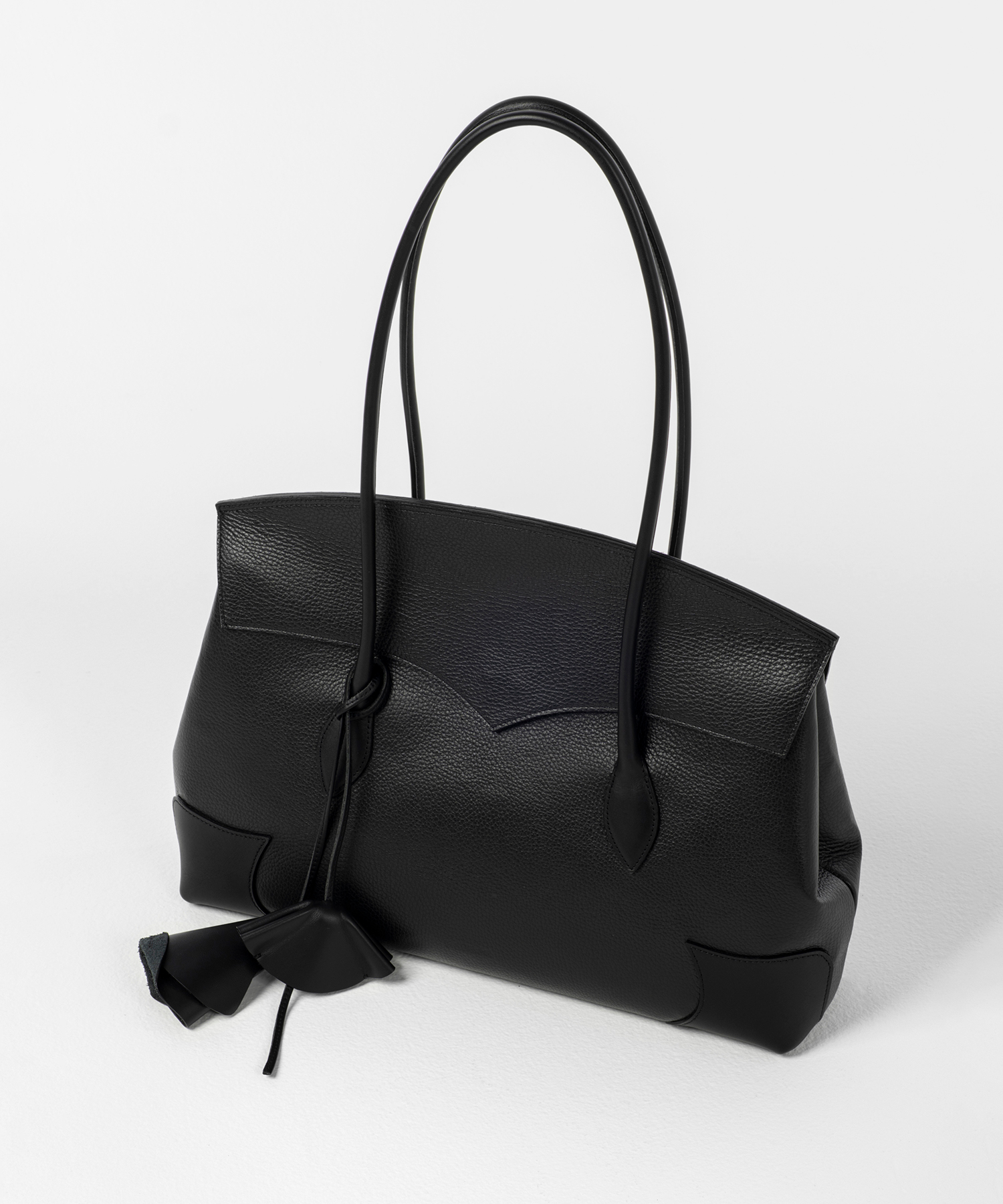 デザイン・日本ならではのきめ細かい技術で、美しく高品質なバッグ・国際的なエコロジカルな認証を受けたイタリアの革専門メーカー「Poletto社」の革を使用・クロームなめしによる加工で傷や汚れが目立ちにくい・カーブや細かいディティールが女性らしい印象・サイドのドットボタンの開閉によりスムーズな取り出しと収納が可能・内側にポケット付き・表面にはFETICOオリジナル刻印入り・バラと蕾をイメージしたキーチェーン付きメーカー品番:FTC262-2009-FETICO-FETICO(フェティコ)は元クリスチャン・ダダのウィンズデザイナー舟山瑛美と、同ブランドのパタンナー・高浜温子の2人で設立。ブランド名は、デザイナーを務める舟山瑛美のニックネームから名付けられている。ブランドの着想源となるのは、女性の造形美を強調するスタイル。女性の美意識や身体観を独自の視点で再構築し、様々な要素を組み合わせながらユニークで新しい女性像を提案する。ラインナップするアイテムは、透け感や光沢のある素材を用い、女性の体のラインを美しく見せるシルエットに仕立てている。日本国内で生産されているのも特徴で、素材だけでなく縫製のクオリティの高さもブランドの強みとなっている。