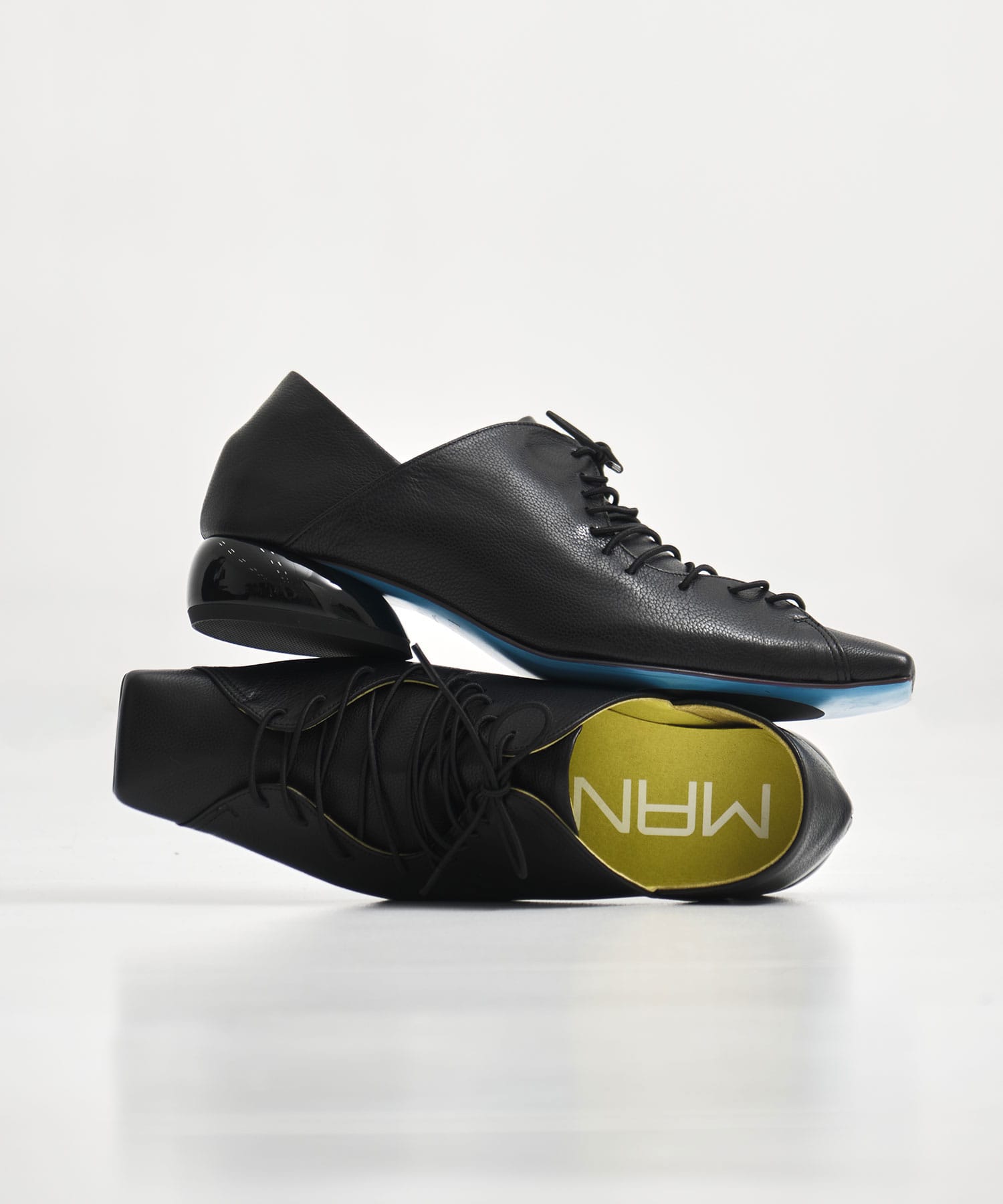 デザイン目を引くのは、複雑なシューレースが印象的なスクエアトゥのシューズ。ボリューミーなバルーンパンツの裾から覗かせることで、足元の「抜け感」と「重厚感」の絶妙なバランスを。全体を白と黒で削ぎ落とし、靴のディテールを際立たせたスタイル。たっぷりとした白のバルーンパンツを引き締めるのは、ニュアンスカラーの多重紐シューズ。あえて裾を溜めることで、靴のデザインをアクセサリーのように引き立ててくれる。ゆったりしたシルエットの中に、鋭いスクエアトゥが凛とした表情をプラスします。何といっても履き心地の良さ。10つのシューホールに編み込んでいるようなゴム紐が特徴。甲が深く足がしっかりと止まるのに、ゴム紐だから締まりすぎず楽ちん。柔らかいレザーを使用しているので、足馴染みも良い。ゴム紐だから解かず靴ひもですっぽり履けちゃうのがポイント。HEEL:3.5 cm重さ(片足):268g素材:本革(牛)メーカー品番:511098-MANA-『MANA』はファクトリーから生まれたブランドであり、モノへのこだわりが原点です。手で作ること、手間をかけること、素材へのこだわりの妥協しないこと...欲しいものが簡単に手に入る今の時代、ここにしかない、これだから欲しい、そして手に入れた後にも幸せを感じてもらうことが出来る、そんな靴作りを私たちは目指しています。