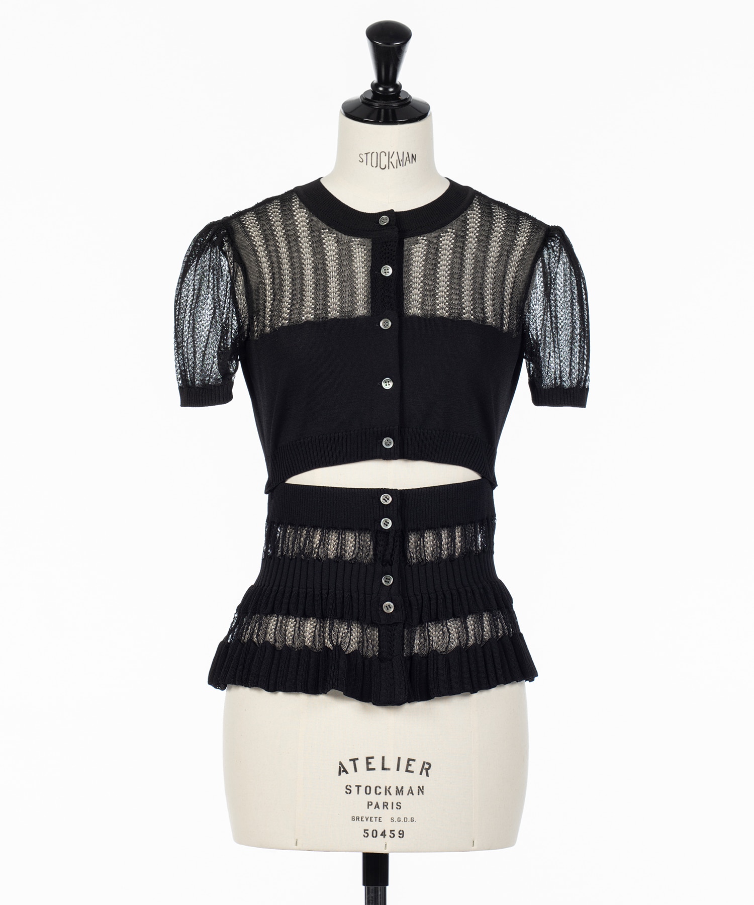 デザイン・光沢感が美しいブライト糸/循環型プロセスで生産されたレース糸・ボーダー状に編み立てた立体感のあるリブ組織・透け感のあるレース柄を組み合わせたデザイン・快適で心地良く体にフィットするシルエット・上見頃とウエスト部分はサイドのボタンで取り外し可能素材透け感:あり伸縮性:あり裏地:なしメーカー品番:FTC262-0703-FETICO-FETICO(フェティコ)は元クリスチャン・ダダのウィンズデザイナー舟山瑛美と、同ブランドのパタンナー・高浜温子の2人で設立。ブランド名は、デザイナーを務める舟山瑛美のニックネームから名付けられている。ブランドの着想源となるのは、女性の造形美を強調するスタイル。女性の美意識や身体観を独自の視点で再構築し、様々な要素を組み合わせながらユニークで新しい女性像を提案する。ラインナップするアイテムは、透け感や光沢のある素材を用い、女性の体のラインを美しく見せるシルエットに仕立てている。日本国内で生産されているのも特徴で、素材だけでなく縫製のクオリティの高さもブランドの強みとなっている。
