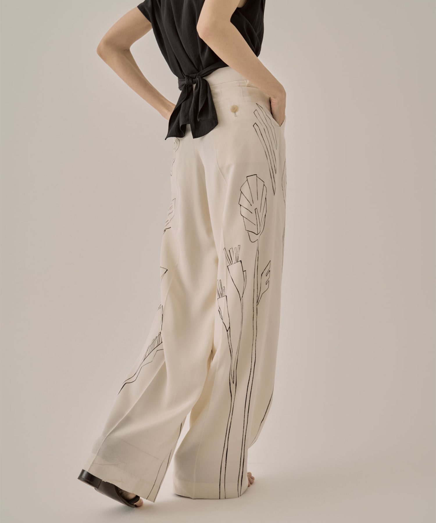 オリジナルグラフィックがアーティーな空気感を放つセミワイドパンツ。