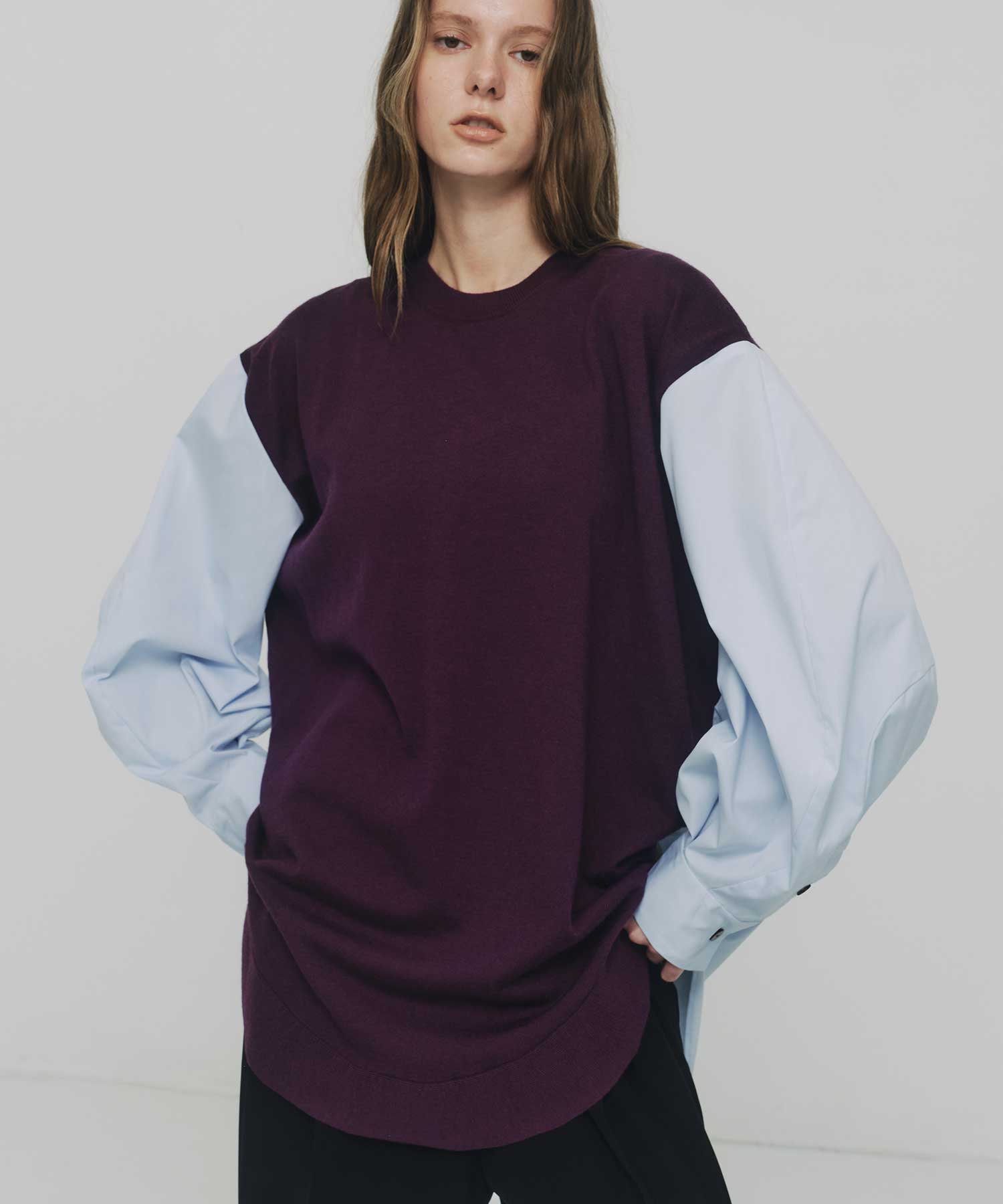 デザインシャツ×ニットコンビデザインのトップス。少し長めの着丈で体のシルエットをカバーしながらこなれ感をプラスしてくれます。後ろ袖口と後ろ身頃に動きが出るようなパターンを採用しているため、シンプルで着やすいながらもENFOLDらしい独特な膨らみを演出してくれます。カジュアルにもエレガントにも着れるアイテムで幅広いシーンで活躍してくれる1着です。素材滑らかな肌触りと軽さがポイント。綿に形状安定加工を施した、シワになりにくいシャツ地。透け感:なし伸縮性:なし裏地:なしメーカー品番:300IA730-1541-ENFOLD-「内面の美しさを映し出す服」をコンセプトに、2012年にデザイナー植田みずき氏がスタート。身体を包み込むようなシルエットと構築的なフォルムで、モードとコンフォートを両立。本質を大切にする女性に向けた、タイムレスなスタイルを提案する。