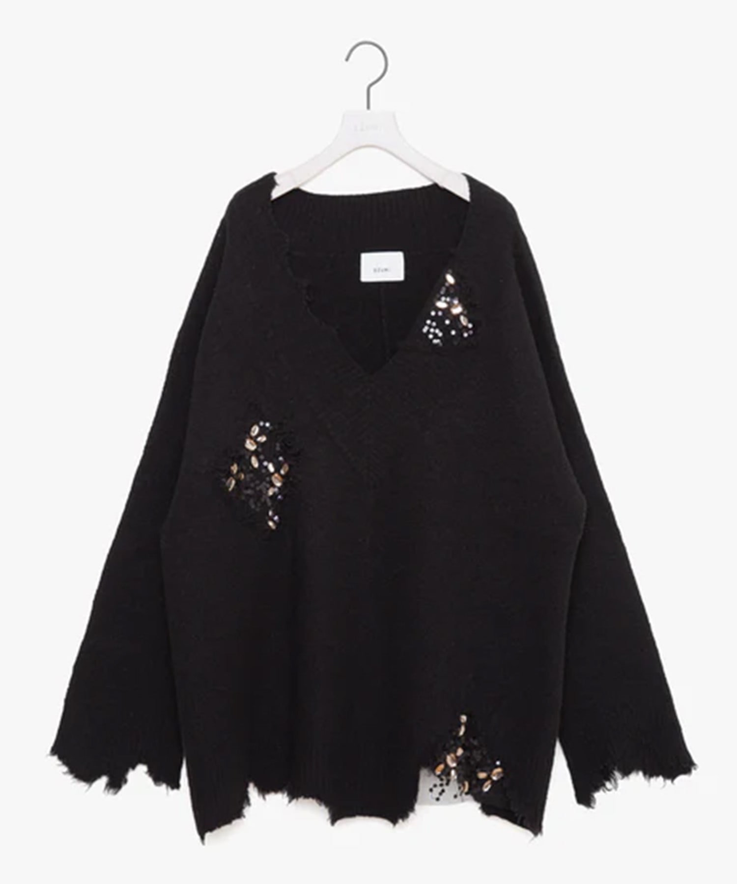 デザイン「エローデッドエンブロイダリーセーター」Eroded Embroidery Sweater ビーズ刺繍が施された独特なデザインが、印象的なデストロイセーターです。今季のコレクションは現代アーティストDaniel Arshamの‘フィクショナル・アーケオロジー’ に着想を得て構築しています。「現代は、未来から見た過去である」という視点のもと、現代の衣服が未来で発掘されるという架空の考古学的アプローチに基づき、デザインを展開しています。刺繍イメージはDaniel Arshamの作品の'Bronze Eroded Series' からインスパイアされました。このシリーズは時間の経過による浸食(Erosion)を受けたかのような加工が施され、オブジェクトの一部が欠損し、風化しているように見えるのが特徴で、石膏や水晶などを用いた考古学的な発掘物のような表現が多く見られました。時間の不可逆性や物質の変化をスパンコール、ビーズ刺繍を施し 表現しています。強縮ニットを使用し、 温かさと軽さを兼ね備えたアイテムです。Vネック仕様で顔周りをすっきりと見せ、レイヤードスタイルにも最適です。デニムやスラックス、スカートとも相性が良く、様々なシーンで活躍する一着に仕上がっています。素材透け感:なし伸縮性:なし裏地:なしメーカー品番:YEAW25KT05-EZUMi-EZUMi(エズミ)は、江角泰俊が手掛ける日本のファッションブランド。2010年、江角泰俊が自身のオリジナルブランド「ヤストシ エズミ」をスタート。2018年秋冬コレクションより、ブランド名を「EZUMi(エズミ)」に改名。「理/LOGIC」をブランドコンセプトとしており、事象、現象、生活、社会、文化、環境の中にある理の中から焦点を絞り、その物、事、摂理、物理に対して考察、実験、研究をする中でデザインを行い、理由のあるデザイン、結果としての形、色、質感を導き出している。