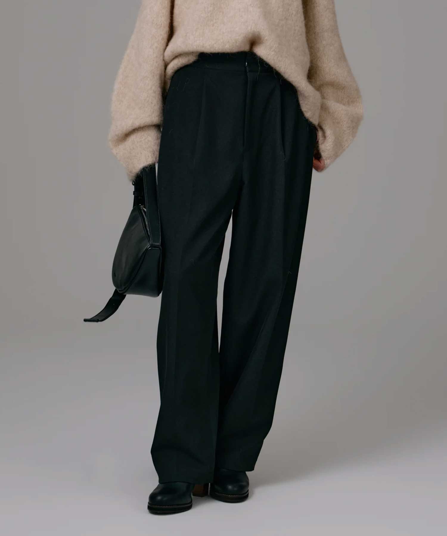 高めのウエスト位置とシンプルなシングルタックが腰回りをすっきりと見せ、脚長効果を発揮します。