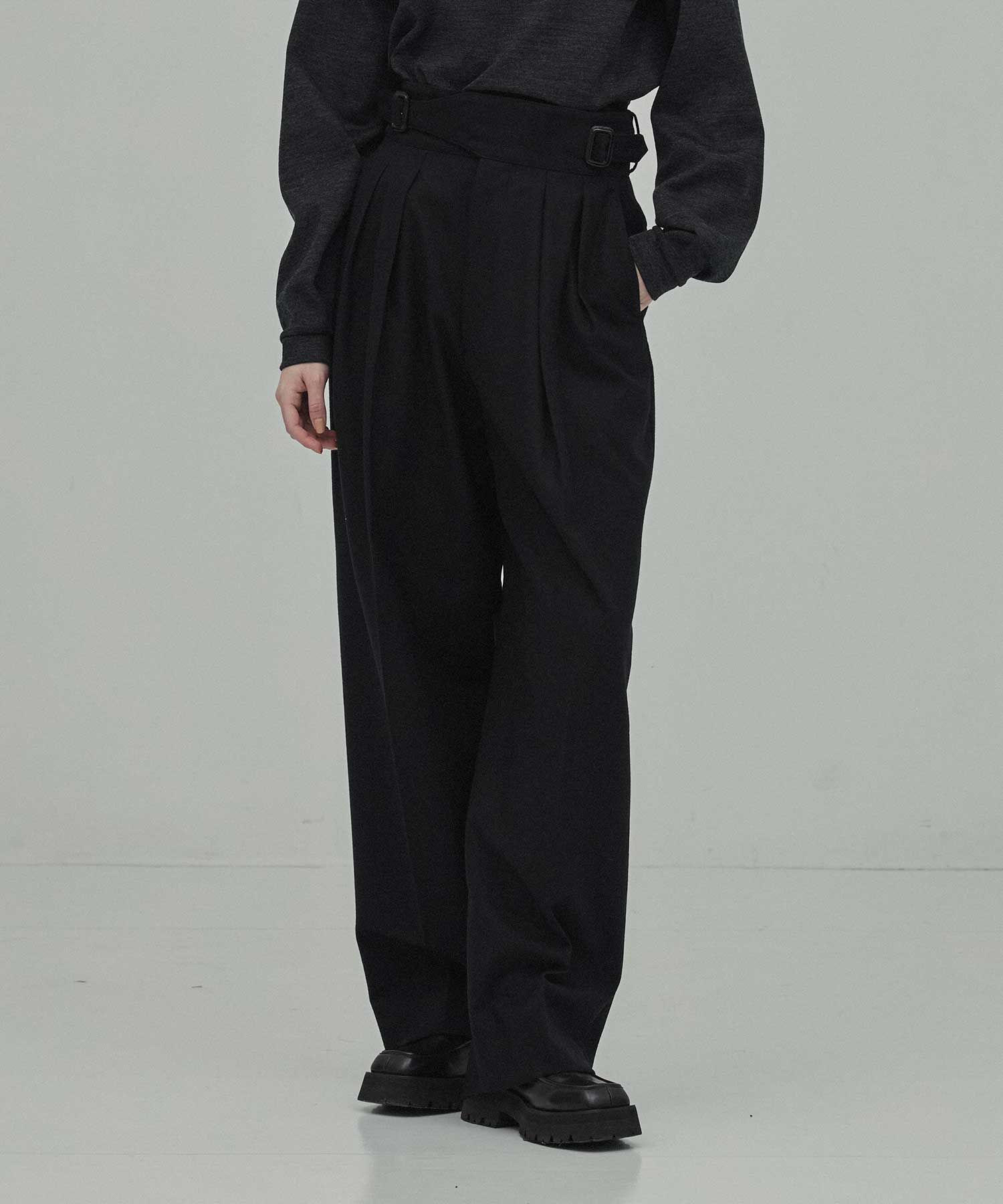 デザイン2/54フランネル素材を使用したグルカスラックス。イギリス軍のグルカパンツをベースにTHE RERACSらしいシルエットと素材に落とし込んだデザイン。フロントにタックを入れ、立体的な腰回りを構成しゆるやかにテーパードさせたライン。対してウエストはフィットさせ特徴的なバックルデザインをアクセントにすることで、メリハリあるシルエットに。素材のハリ感とパターン設計が合わさり、THE RERACSで長年愛されているパンツです。素材2/54番の厳選された梳毛糸を縮絨したカレッジフランネル素材。 国内トップクラスの限られた技術によりタテ糸を限界まで追い込み高密度に織り上げています。通常工程の3倍もの時間をかけ 縮絨・起毛を繰り返し高密度に圧縮することで毛が抜けにくく、型崩れしにくい素材となっております。繊維が長く繊細な原毛を使用する為、構成本数を増やし仕上げに対する耐久性を確保し、伝統を継承したトラディショナルなカレッジフラノ素材となっております。ボタンはマーブル調の希少な水牛ボタンを使用しています。透け感:なし伸縮性:なし裏地:なしメーカー品番:25FW-REPT-263L-2-J※こちらの商品はブランド様のご意向により、ポイント付与が不可となっております。ご了承ください。-THE RERACS-デザイナーの倉橋直実氏は、セレクトショップ勤務中にパターンメイキングやテキスタイルを学び、その後ブランド活動をスタート。ベーシックでありながらも既成概念に捉われず、時代に合ったシルエットや素材を追求しながら、着る人に依存する、着る人を美しくするデザインを提案している。