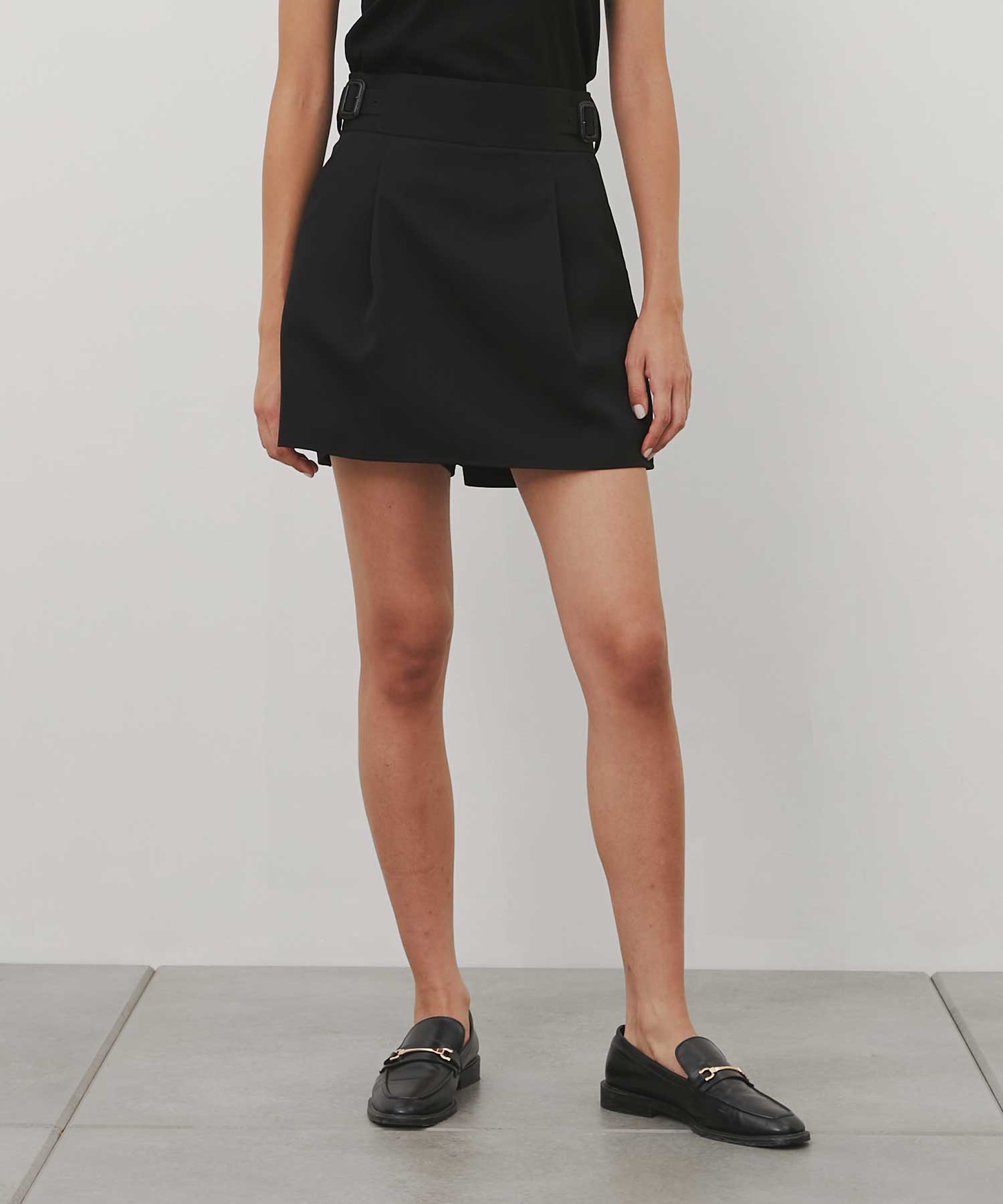 デザインメリノウールのギャバジン素材を使用したレイヤードスカートショーツ。フロントはスカートに見えるデザインで、中がショートパンツの仕様になっている為、機能的で履き心地の良さと、デザイン性を高めたアイテム。裾に向かって緩やかに広がるAラインシルエットが女性らしさを、素材のハリ感と光沢感がより上品で洗練された印象に。素材メリノウールを使用した、伝統的なギャバジンを使用。更にこのギャバジンに近代的な独自の含浸加工を施し、対極的な仕上げをしています。含浸加工は縦横の糸の隙間を特殊な樹脂で埋める仕上げで、ハリ感のある独自の風合いに仕上げています。透け感:なし伸縮性:なし裏地:ありメーカー品番:25FW-REPT-276L-J※こちらの商品はブランド様のご意向により、ポイント付与が不可となっております。ご了承ください。-THE RERACS-デザイナーの倉橋直実氏は、セレクトショップ勤務中にパターンメイキングやテキスタイルを学び、その後ブランド活動をスタート。ベーシックでありながらも既成概念に捉われず、時代に合ったシルエットや素材を追求しながら、着る人に依存する、着る人を美しくするデザインを提案している。