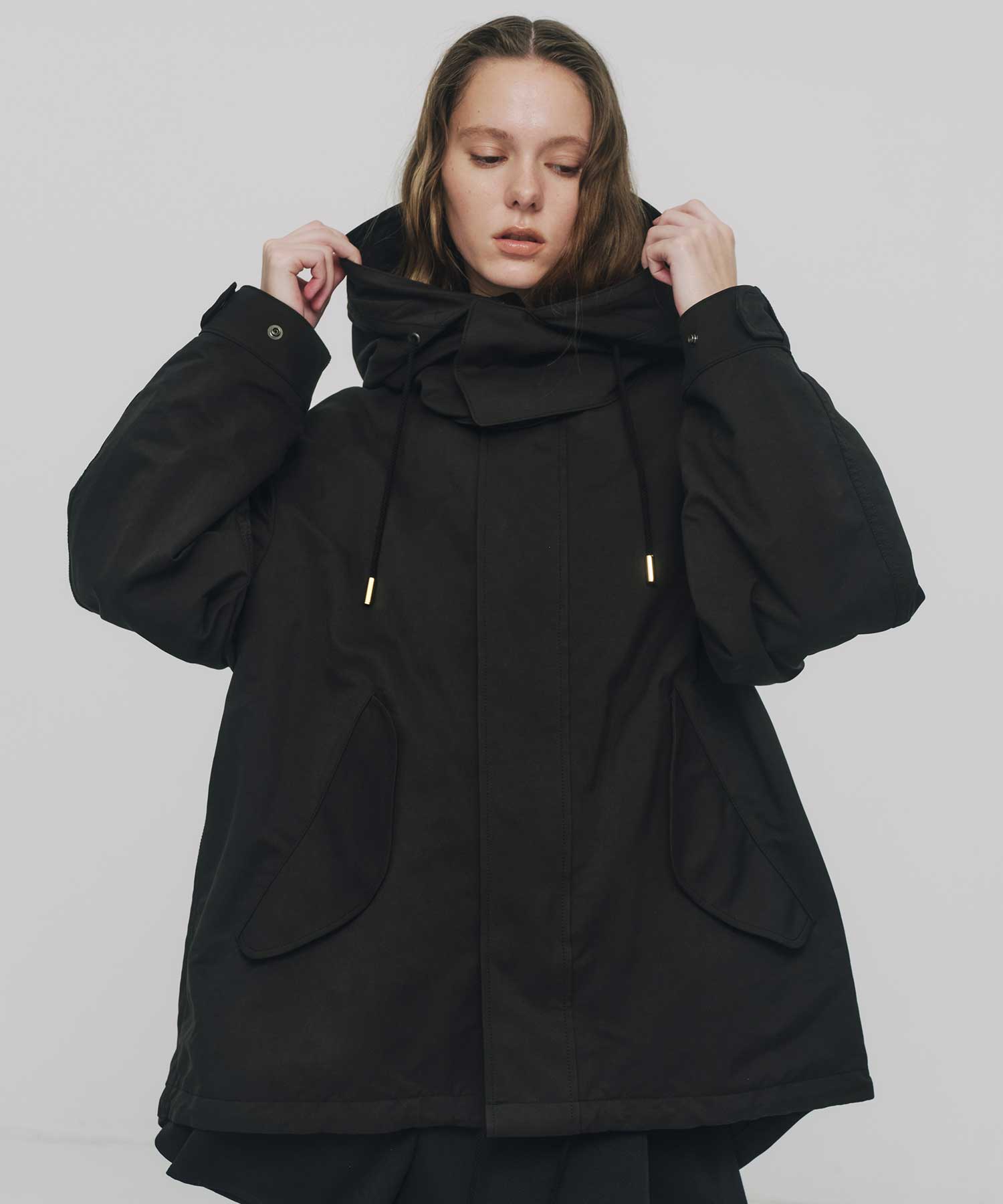高密度ポリエステル/ナイロン素材を使用した、定番のルーズモッズコート。