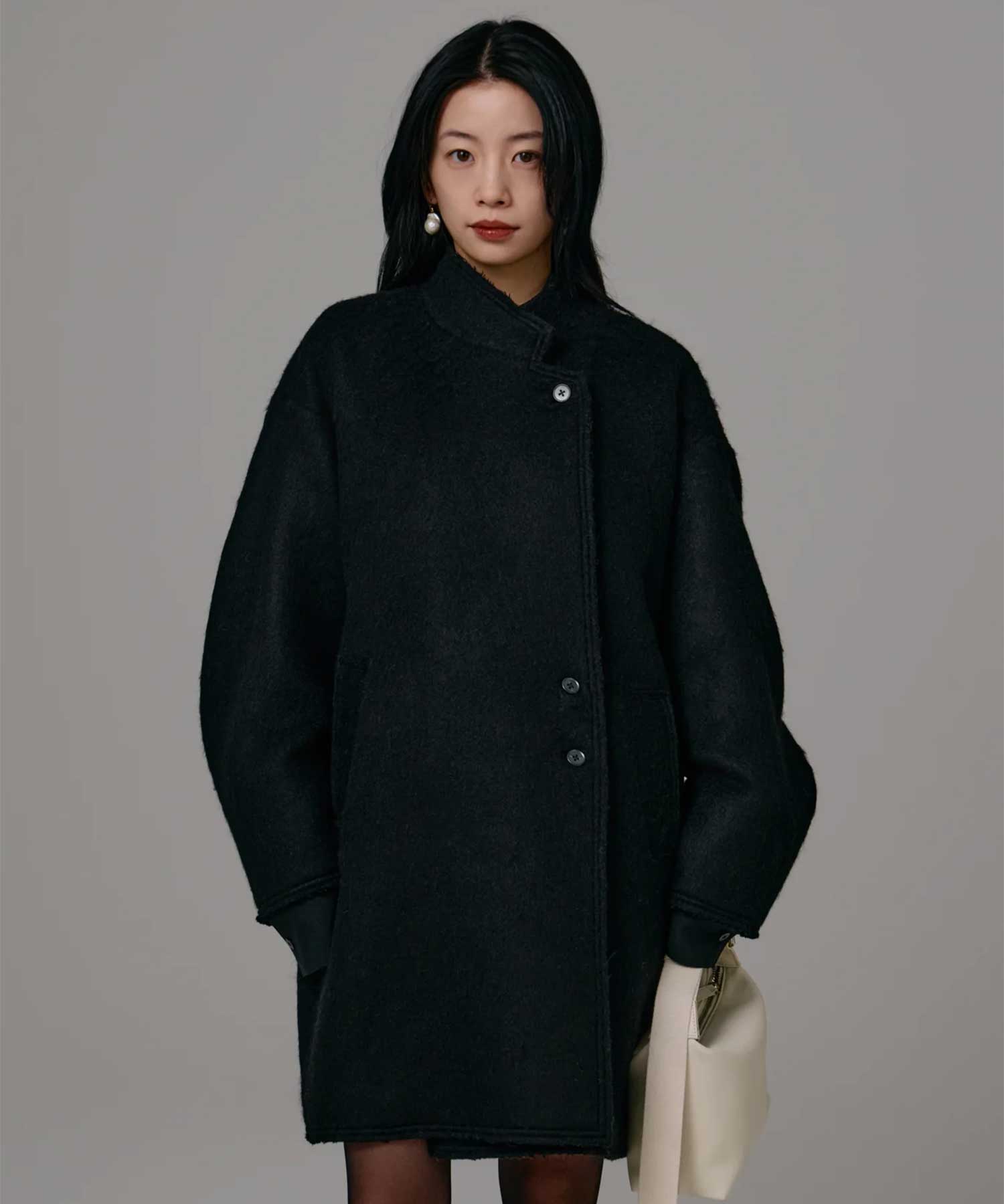 デザイン柔らかなシャギー素材を贅沢に使用した、オーバーサイズコート。温もりを感じる風合いと軽やかな着心地を兼ね備え、さっと羽織るだけで自然とこなれた印象に。ゆったりとしたシルエットがリラックスムードを生み出しつつ、襟元のカッティングで洗練された雰囲気をプラス。さらに、全体をカットオフ仕上げでまとめることで程よいラフさを加え、甘さを抑えた大人のエッセンスを加えました。身幅や袖幅にゆとりをもたせているため、厚手のニットもすっきりと重ねられ、幅広いスタイリングが可能です。素材透け感:なし伸縮性:なし裏地:ありドライクリーニング推奨メーカー品番:lo253-02-Louren-理想とする女性の名は ”louren”その時の気分や流行からインスパイヤされた、彼女のライフスタイルを詰め込んだリアルクローゼットを再現。媚びてないのにどこか色っぽい、全ての女性に隠れた魅力を引き出す服。飾らない女性らしさと心地よいライフスタイルを提案した、大人のベーシックスタイル。