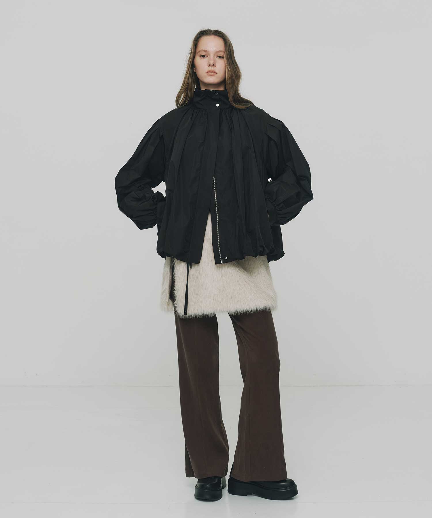 ワイドパンツにはもちろん、スキニーパンツに合わせていただくのがおすすめです。