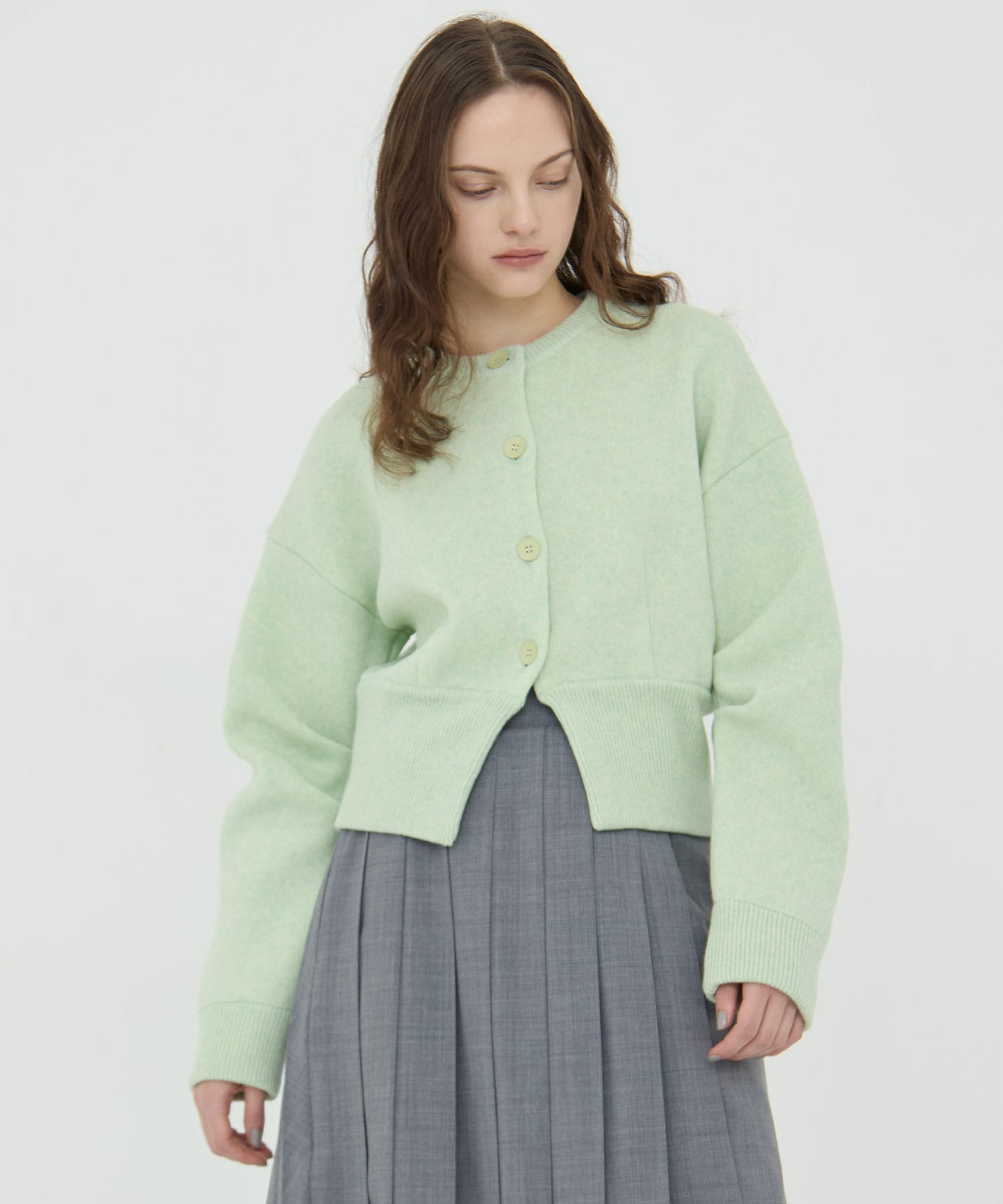 〈素材〉 ・透け感:なし ・裏地:なし ・伸縮性:あり ・表はウール、内側はポリエステルで肌触り抜群。 ・二重編みで厚みがあり暖かい着心地。 ・洗っても型崩れしにくい素材。 〈デザイン〉 ・丸みのあるコロンとしたシルエット。 ・ボトムにはトレンドのカーブパンツを合わせると今年らしいスタイリングに。